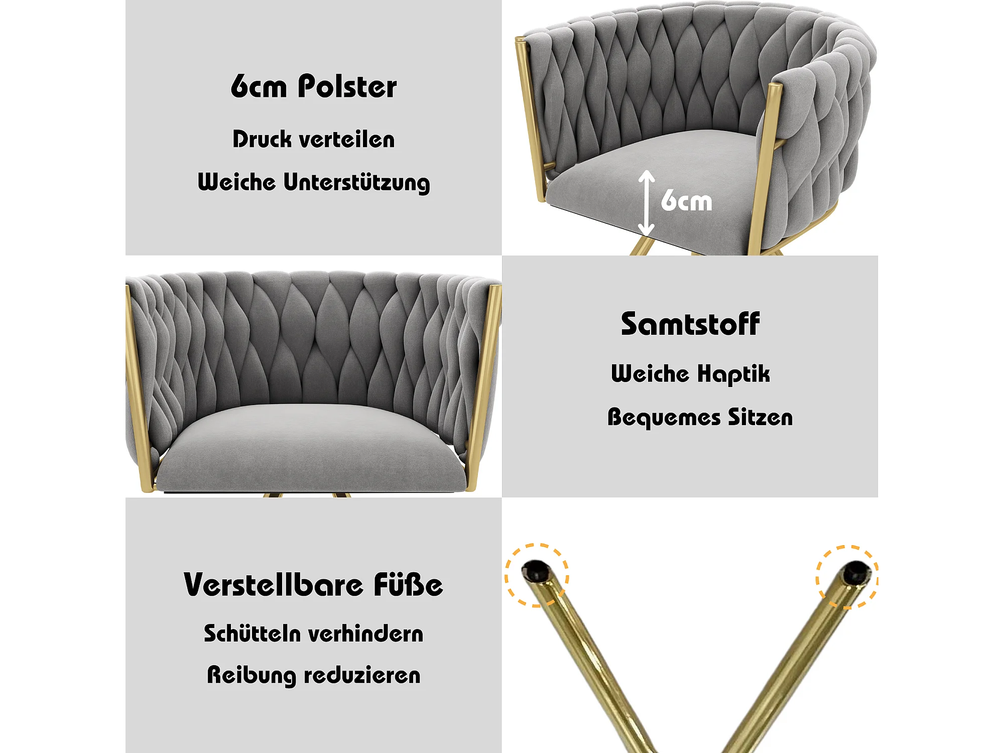Chaise de salle à manger en velours, fauteuil de salon, pivotant, pieds métalliques dorés, gris et or