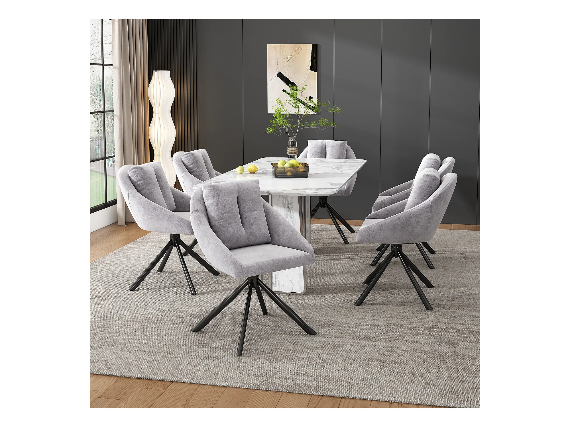 Chaise de Salle à Manger en Velours Gris, Design Moderne, Rotative, Matériau en Velours, Structure en Métal (72.39x62.23x49.53 cm)