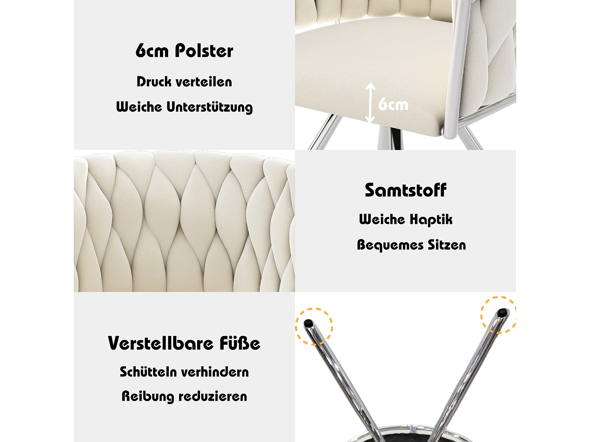 Chaise de salle à manger en velours, set de 4 chaises, chaise pivotante de luxe pour salon et chambre, avec pieds en métal(62x60x57 cm)