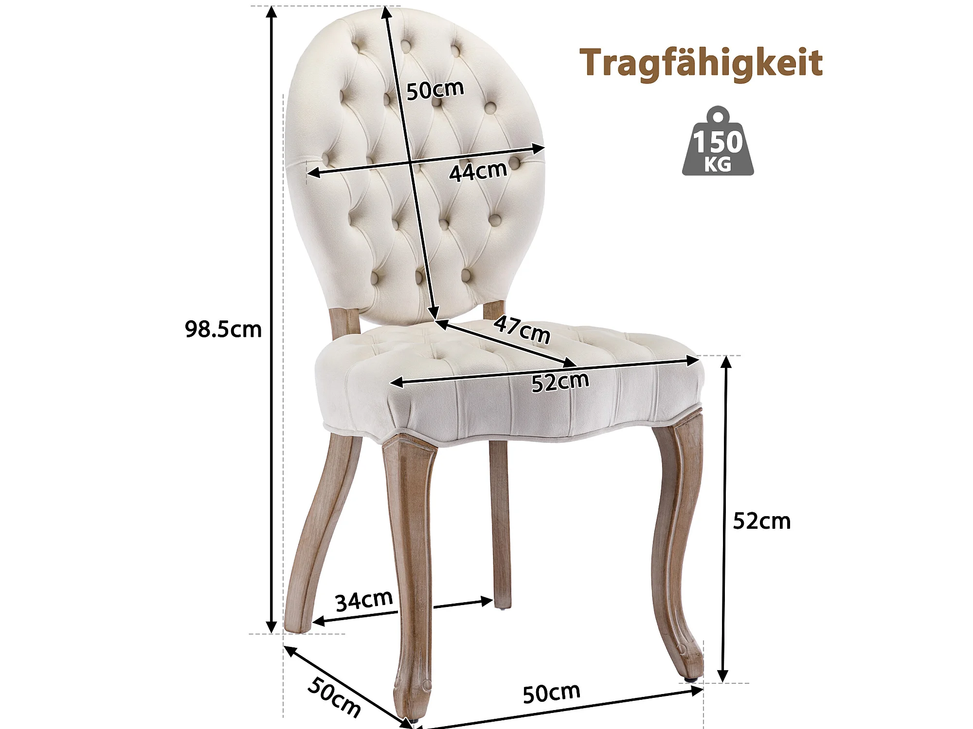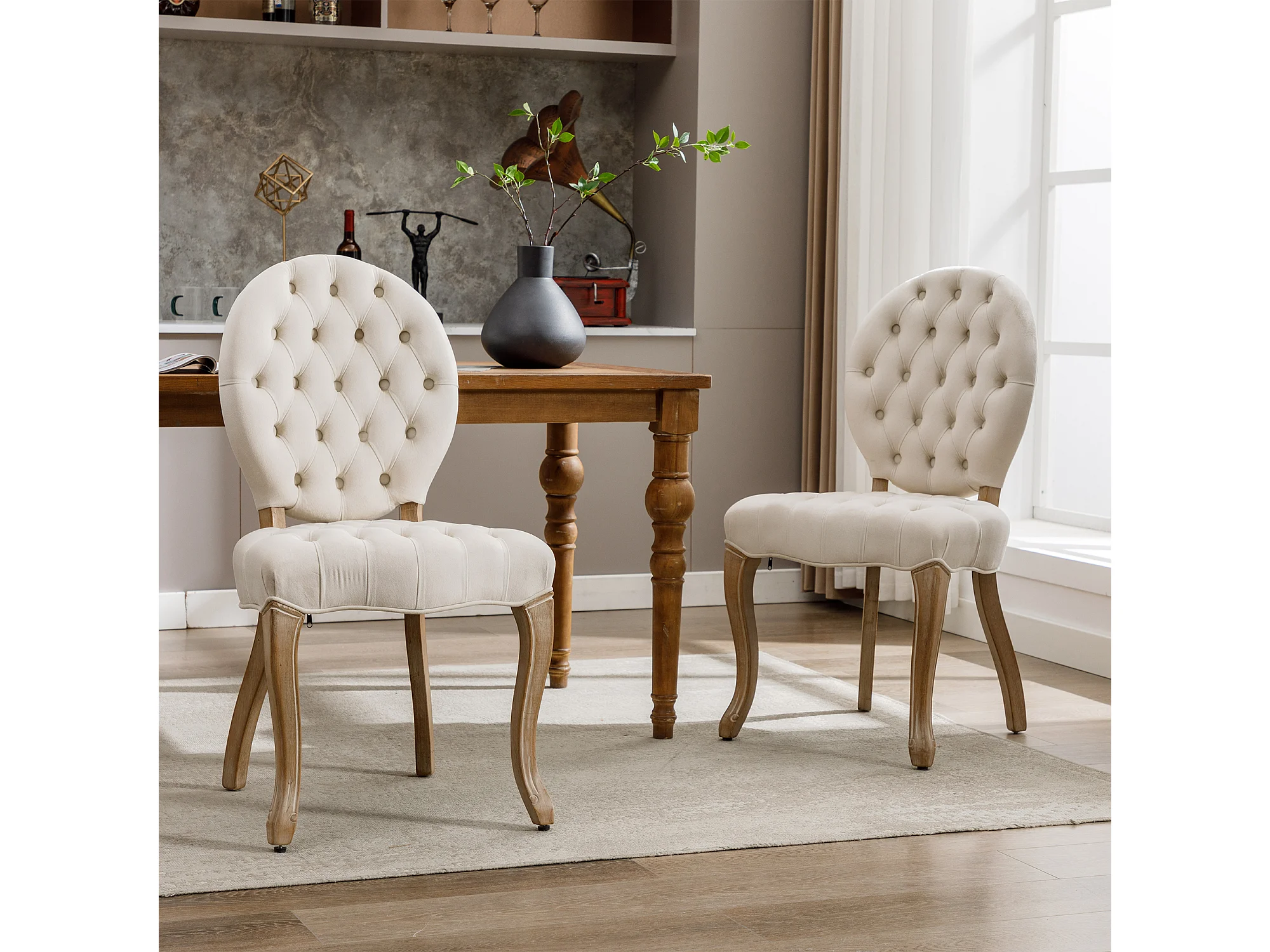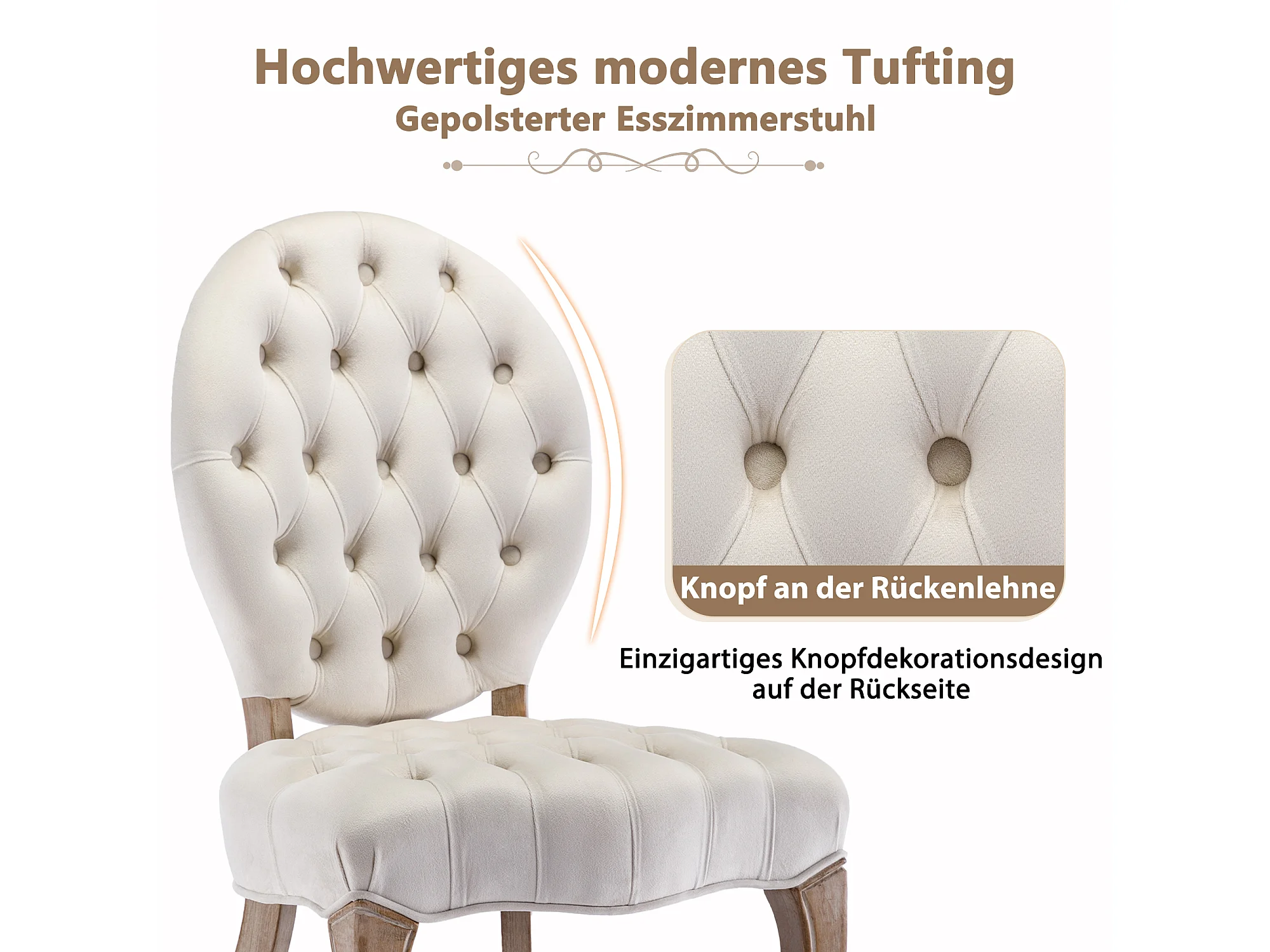 Chaises de salle à manger françaises en velours, lot de 2, avec boutons capitonnés