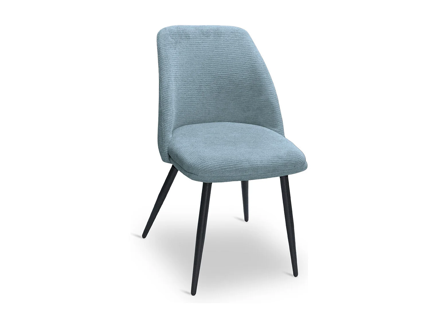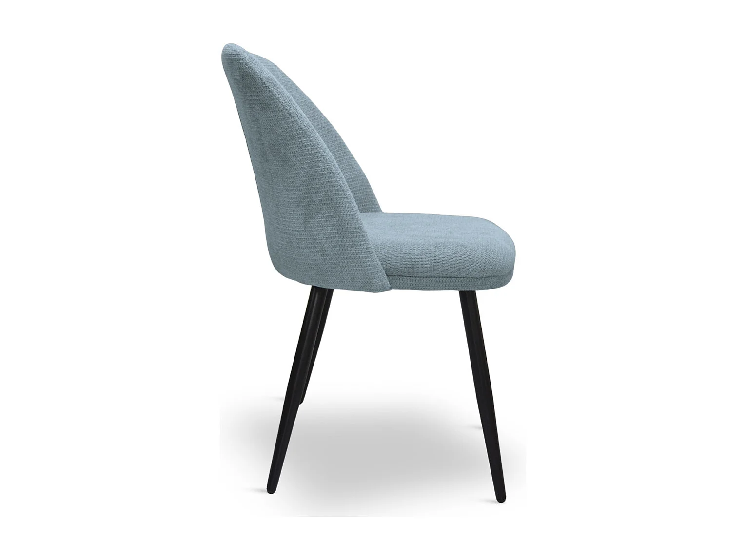 Chaise de salle à manger Kety en microfibre bleu clair avec pieds en métal noir