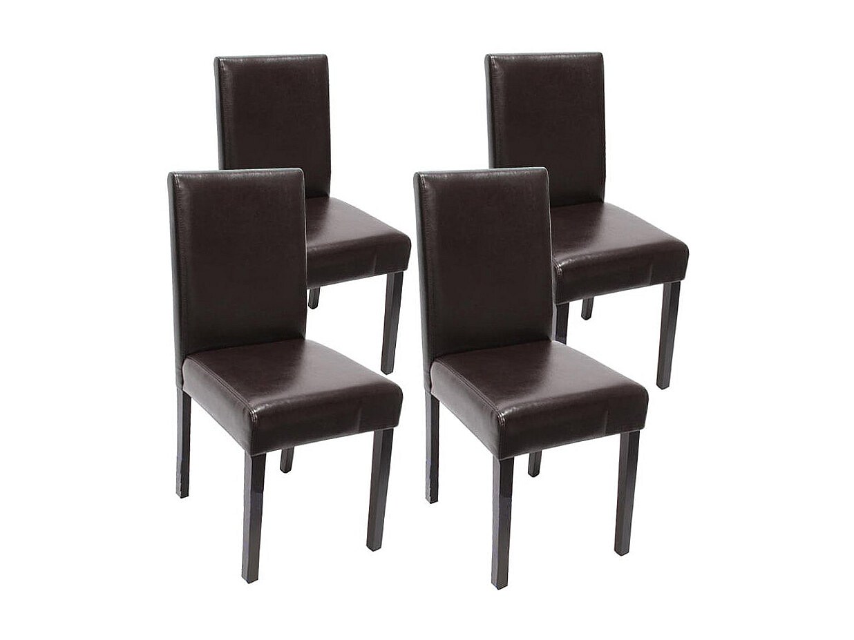 Chaise de salle à manger Littau (lot de 4), cuir reconstitué, marron, pieds foncés
