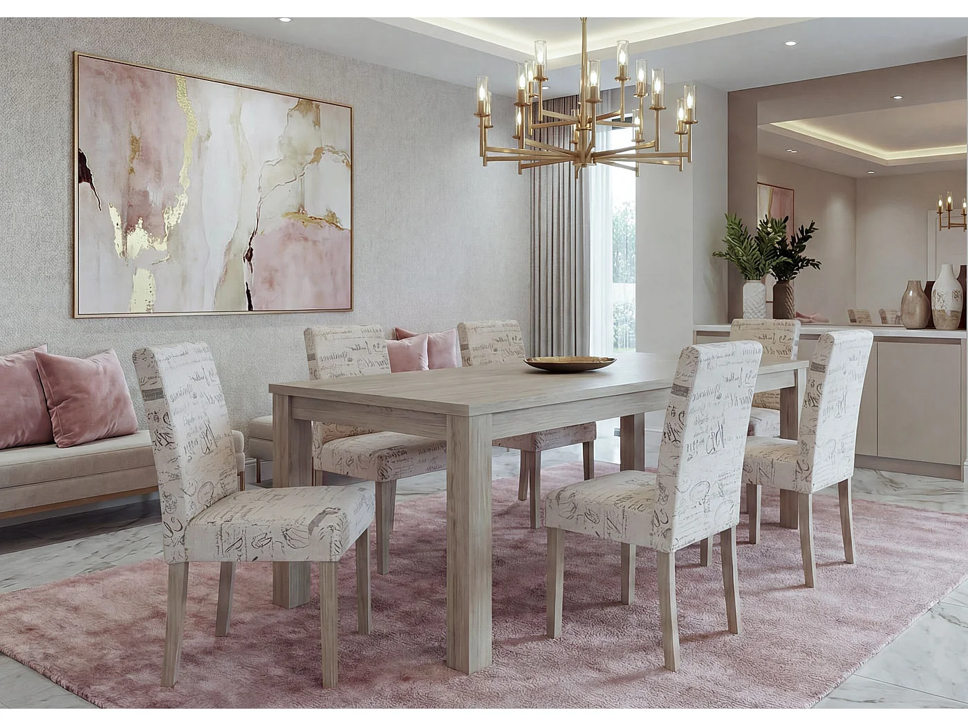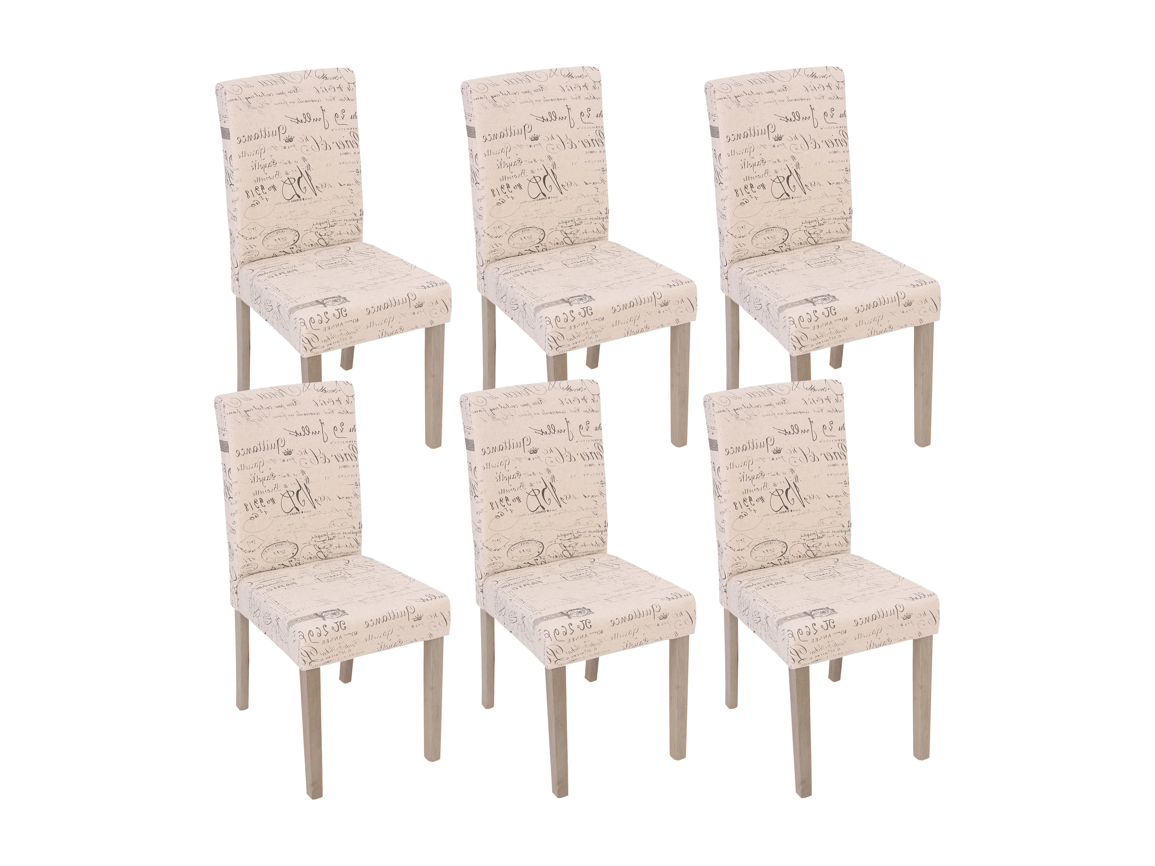 Chaise de salle à manger Littau Textil (lot de 6), tissu avec écriture, crème, pieds couleur chaîne
