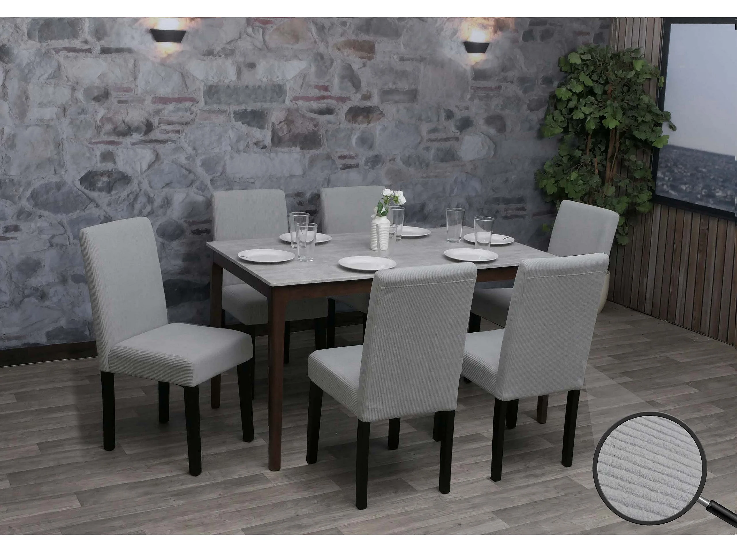 Chaise de salle à manger Littau Velours (lot de 6), gris clair, pieds foncés