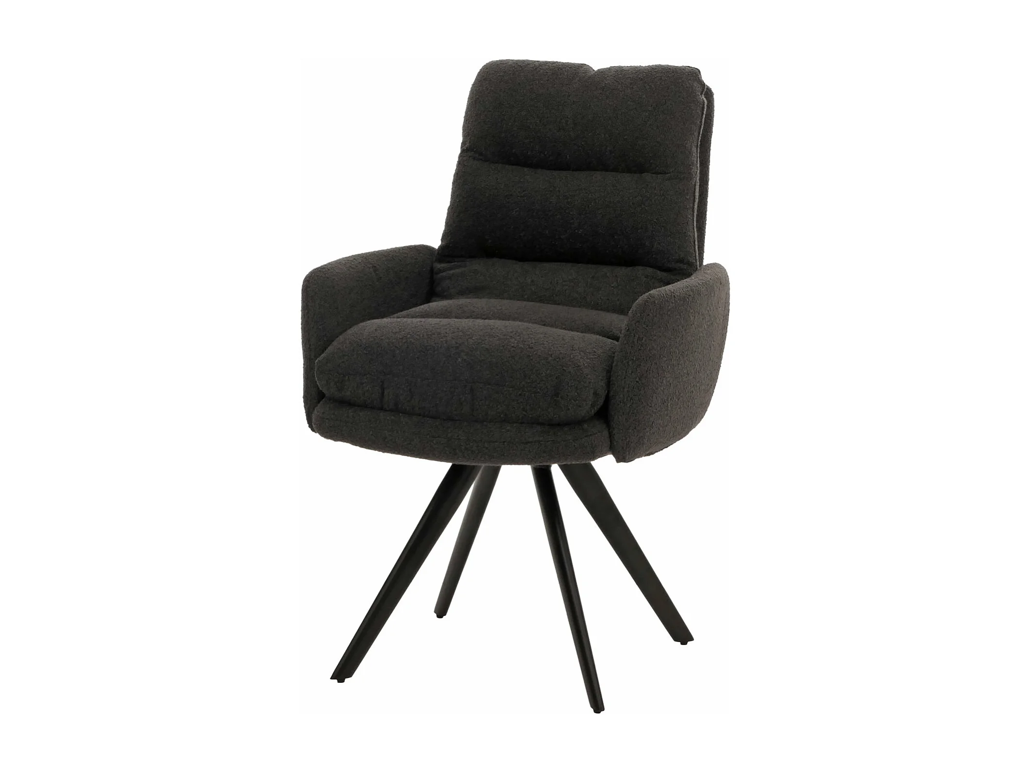 Chaise de salle à manger MCW-G66 Bouclé, gris foncé, avec accoudoirs