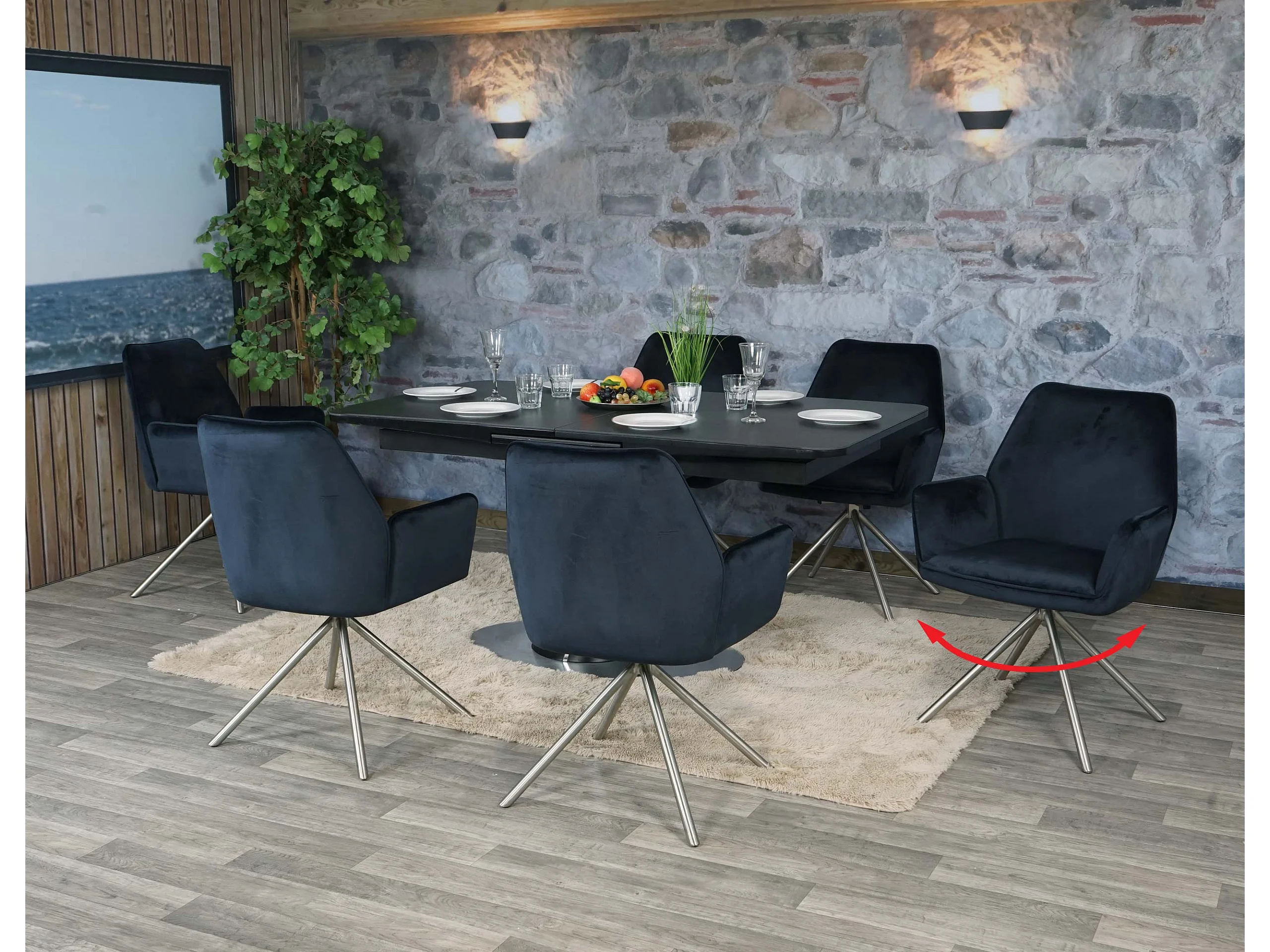 Chaise de salle à manger MCW-G67 (lot de 6), anthracite-bleu, inox