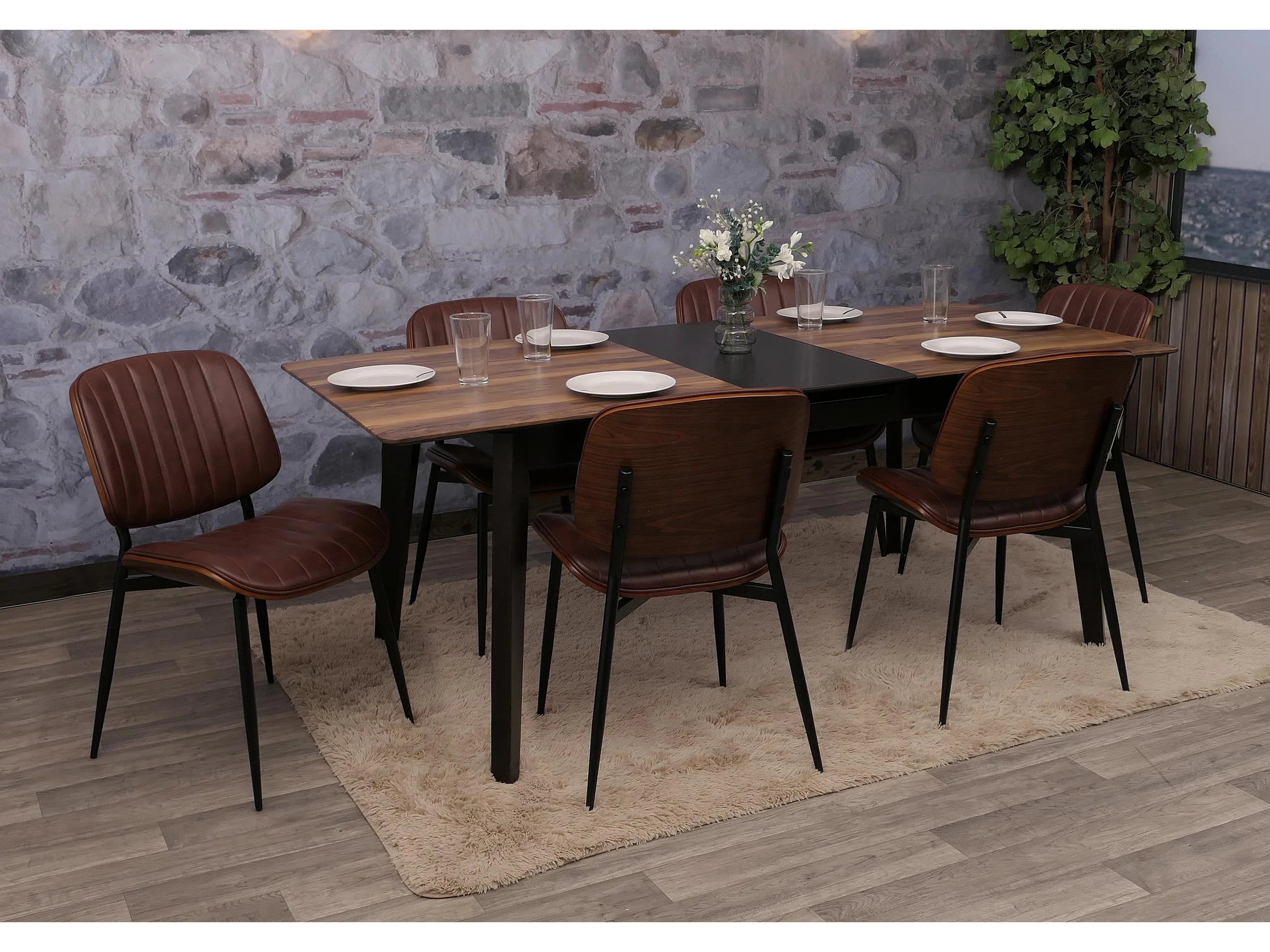 Chaise de salle à manger MCW-O44 (lot de 6), aspect noyer, brun vintage