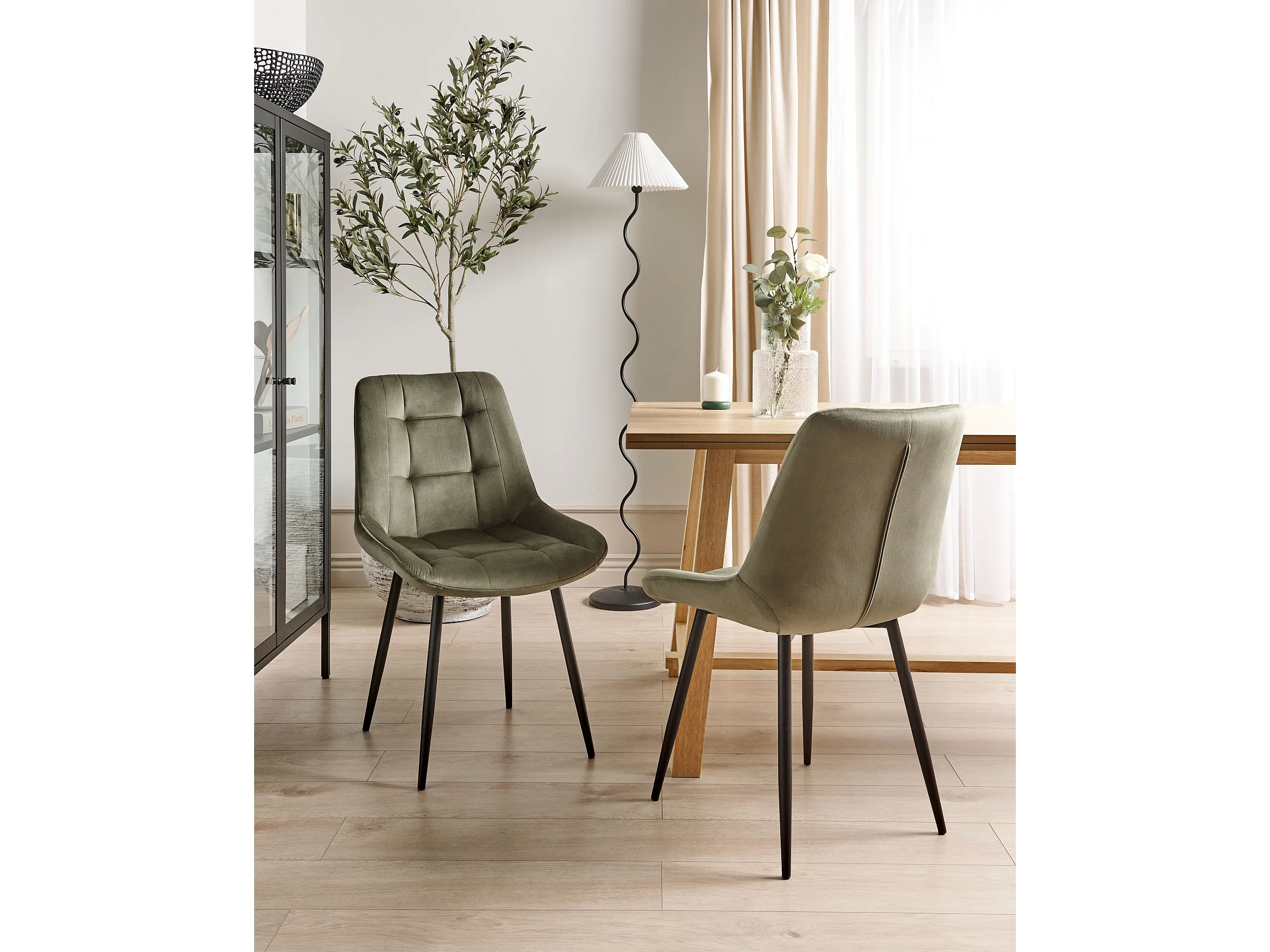 Lot de 2 chaises de salle à manger MELROSE Velours Vert olive