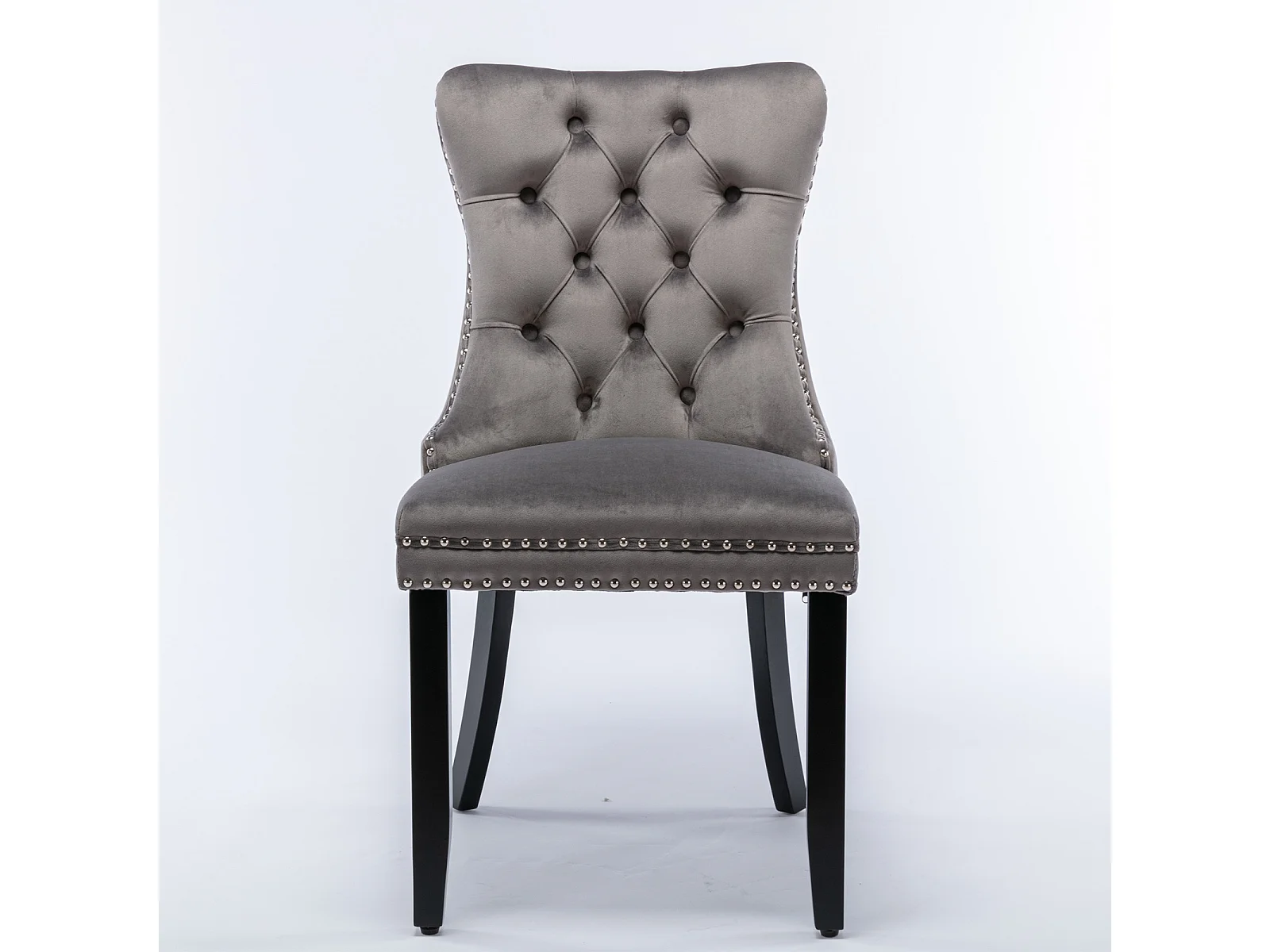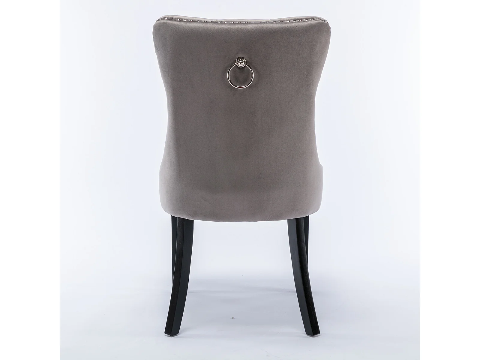 Chaise de salle à manger moderne, velours gris, pieds en bois, clous décoratifs, lot de 2 (65x50x95 cm)