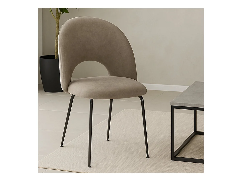 Chaise de salle à manger Paola en microfibre nubuck gris tourterelle avec pieds en métal noir