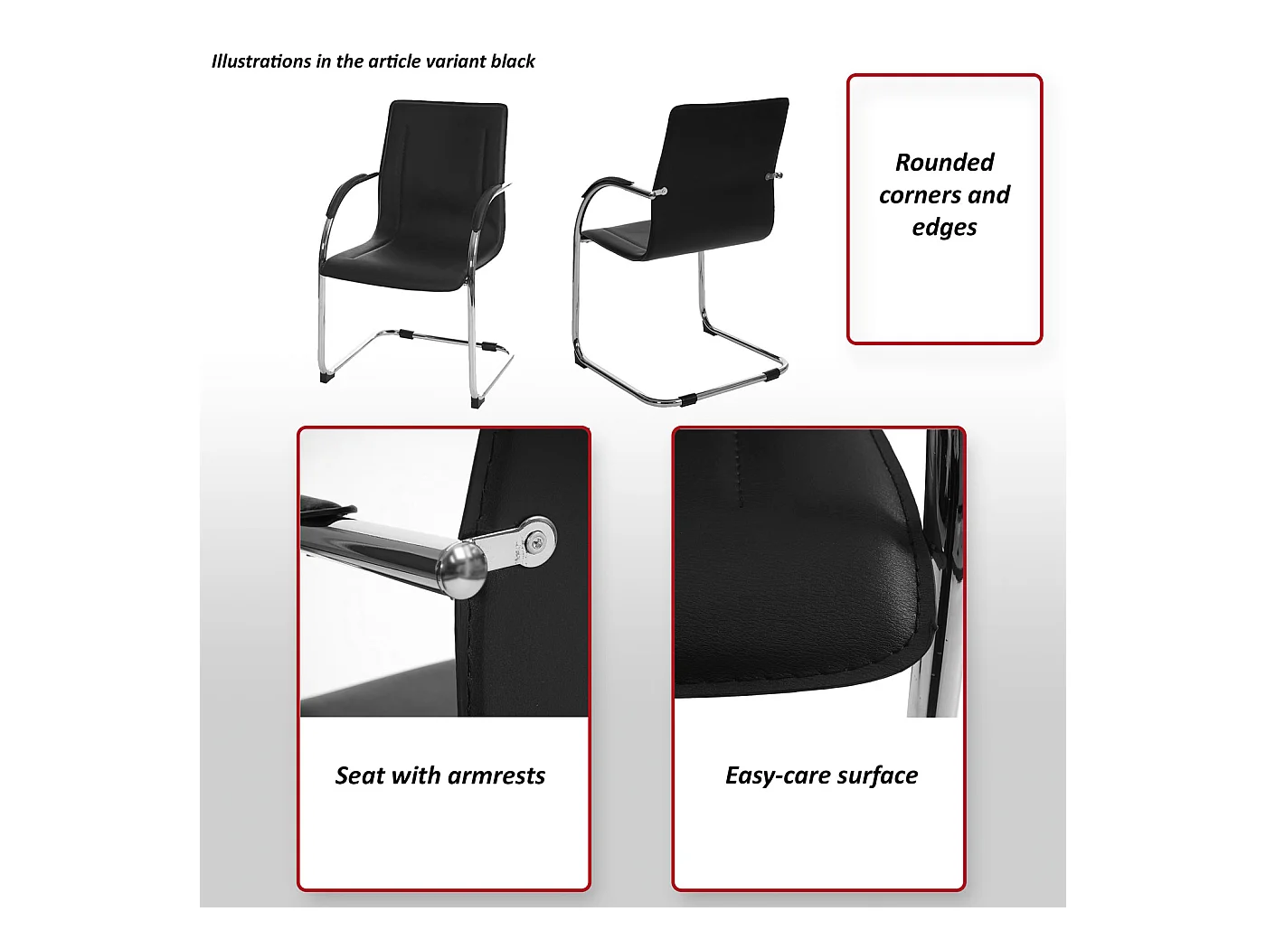 Siège de conférence MCW-H31, cuir synthétique noir