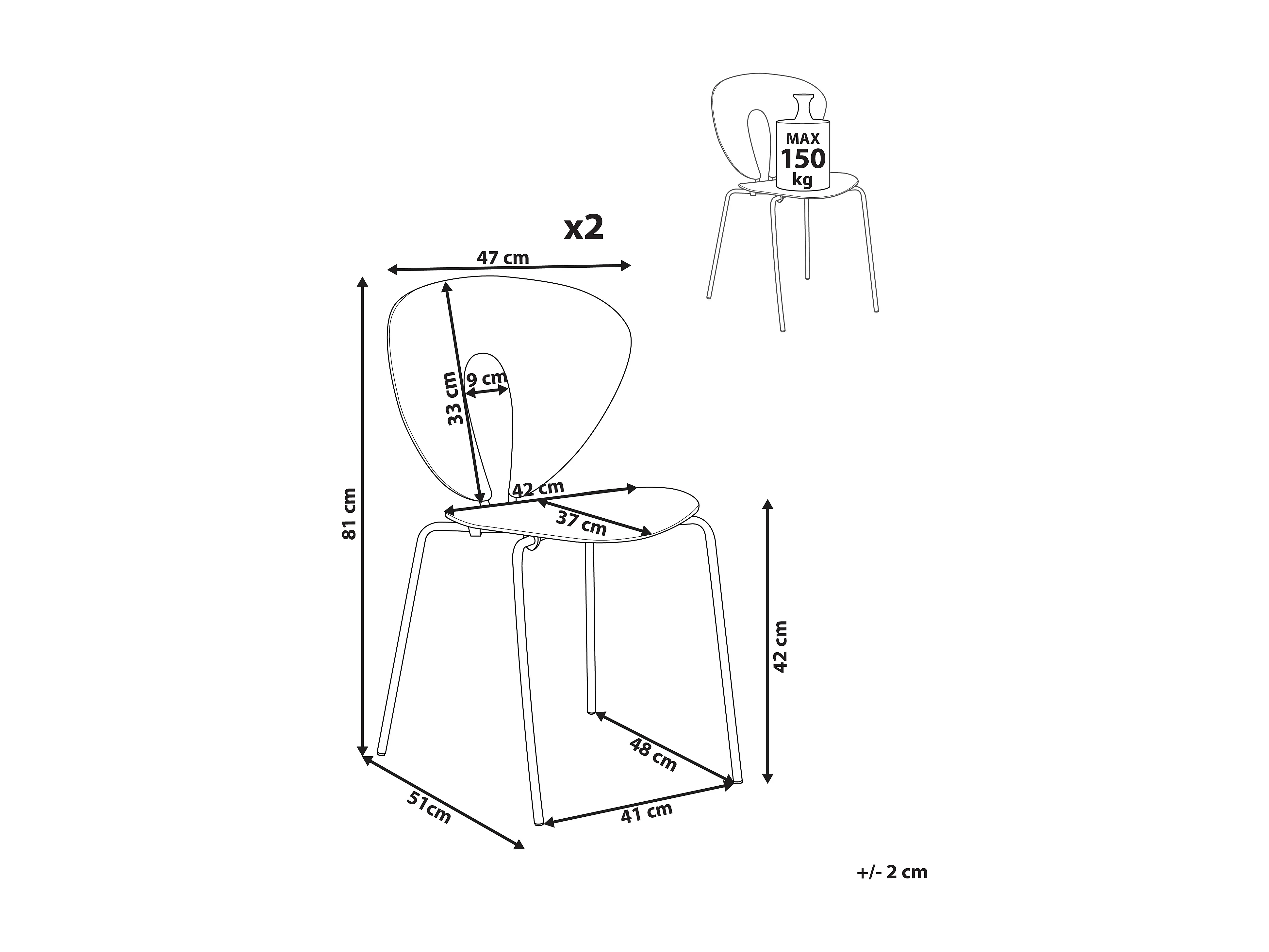 Lot de 2 chaises de salle à manger TRACY Blanc