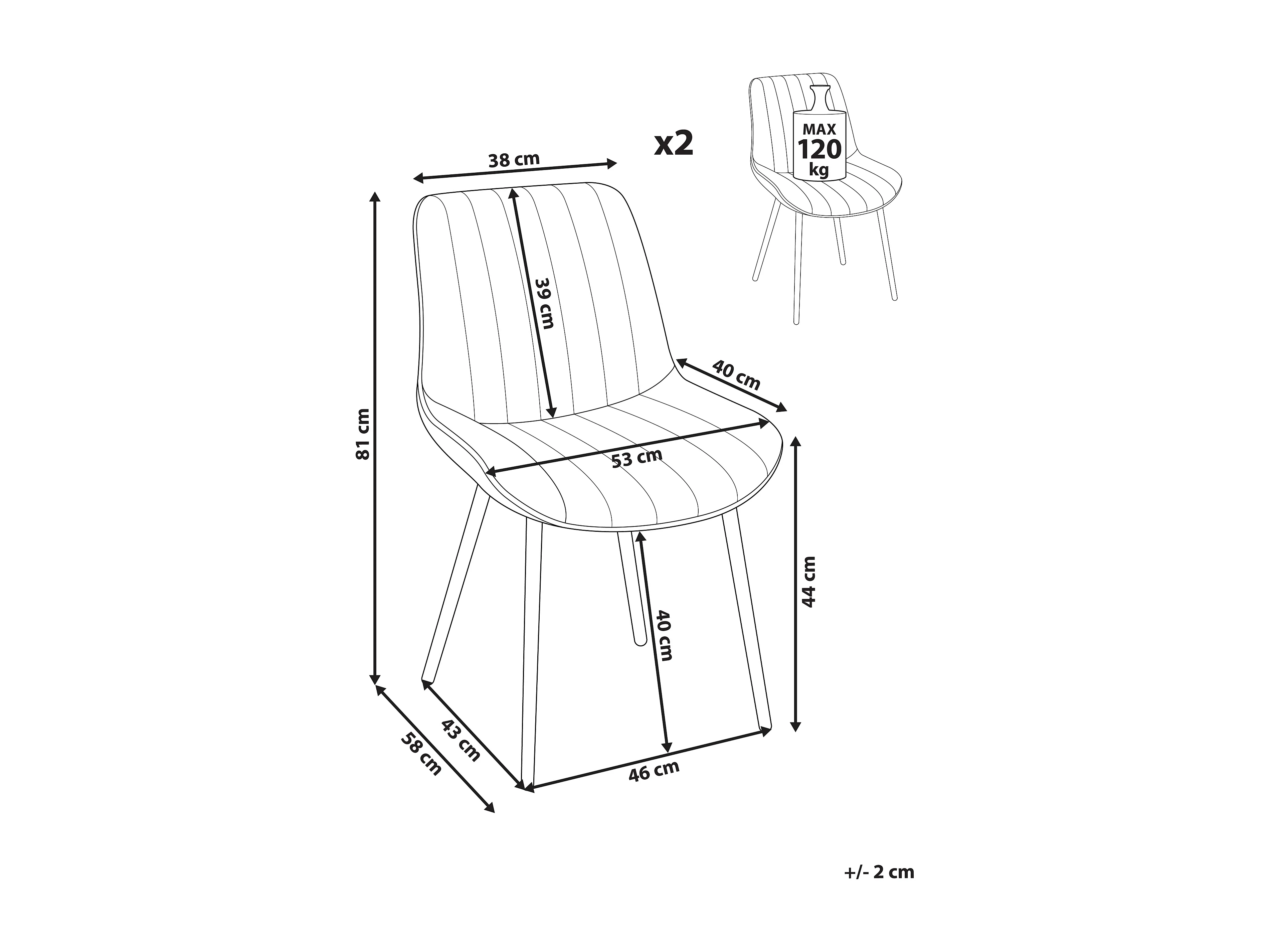 Lot de 2 chaises à manger - 50 x 41 x 91 cm - velours à boutons + cadre en bois massif - velours - beige
