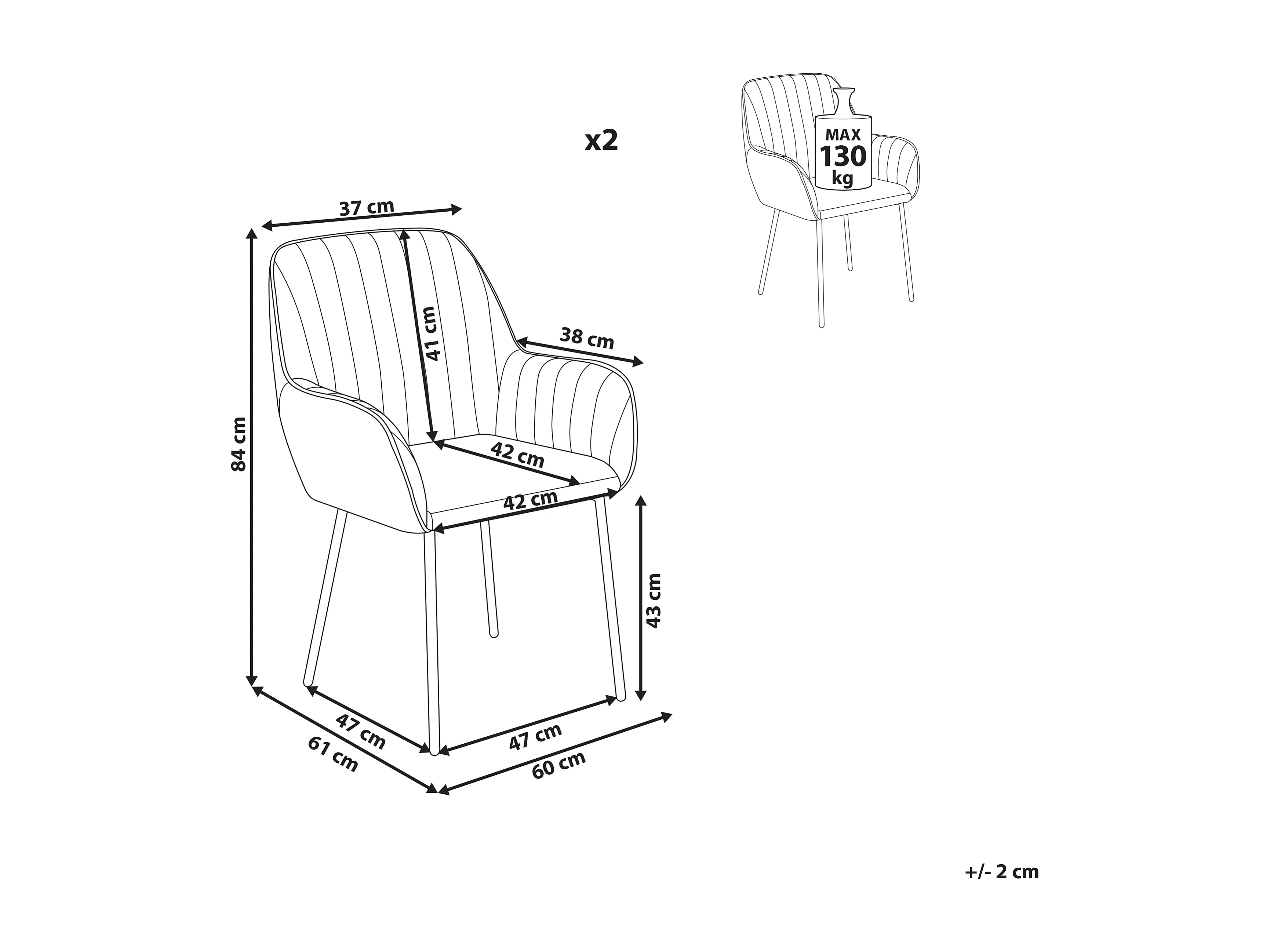Lot de 2 chaises de salle à manger WELLSTON Velours Blanc cassé