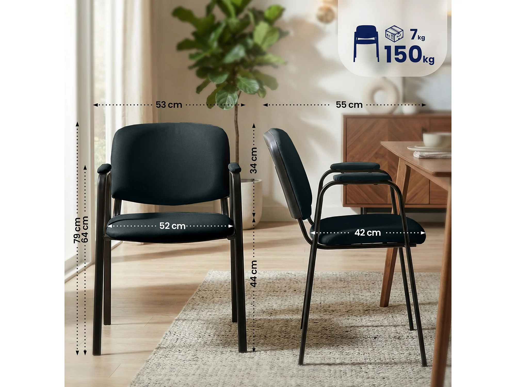 Chaise de conférence - Similicuir & Blanc - Noir - Ken Pro