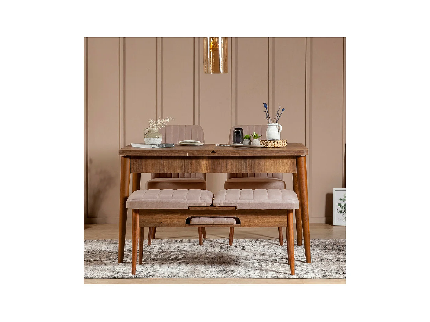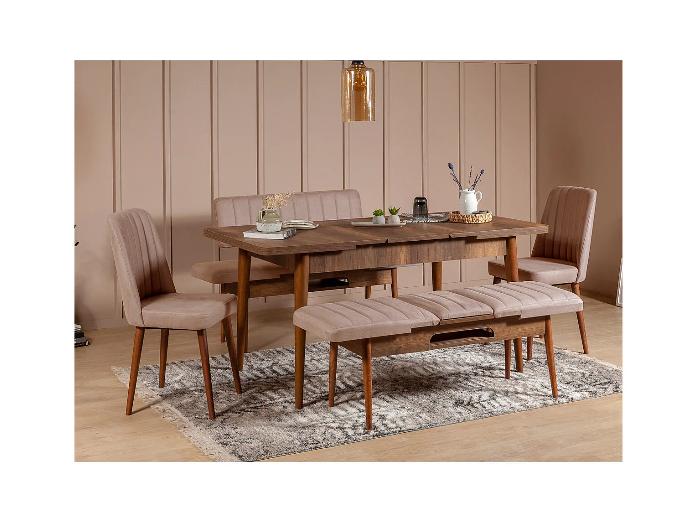 Chaise de salle à manger tissu rose pale et bois Noyer Mareva