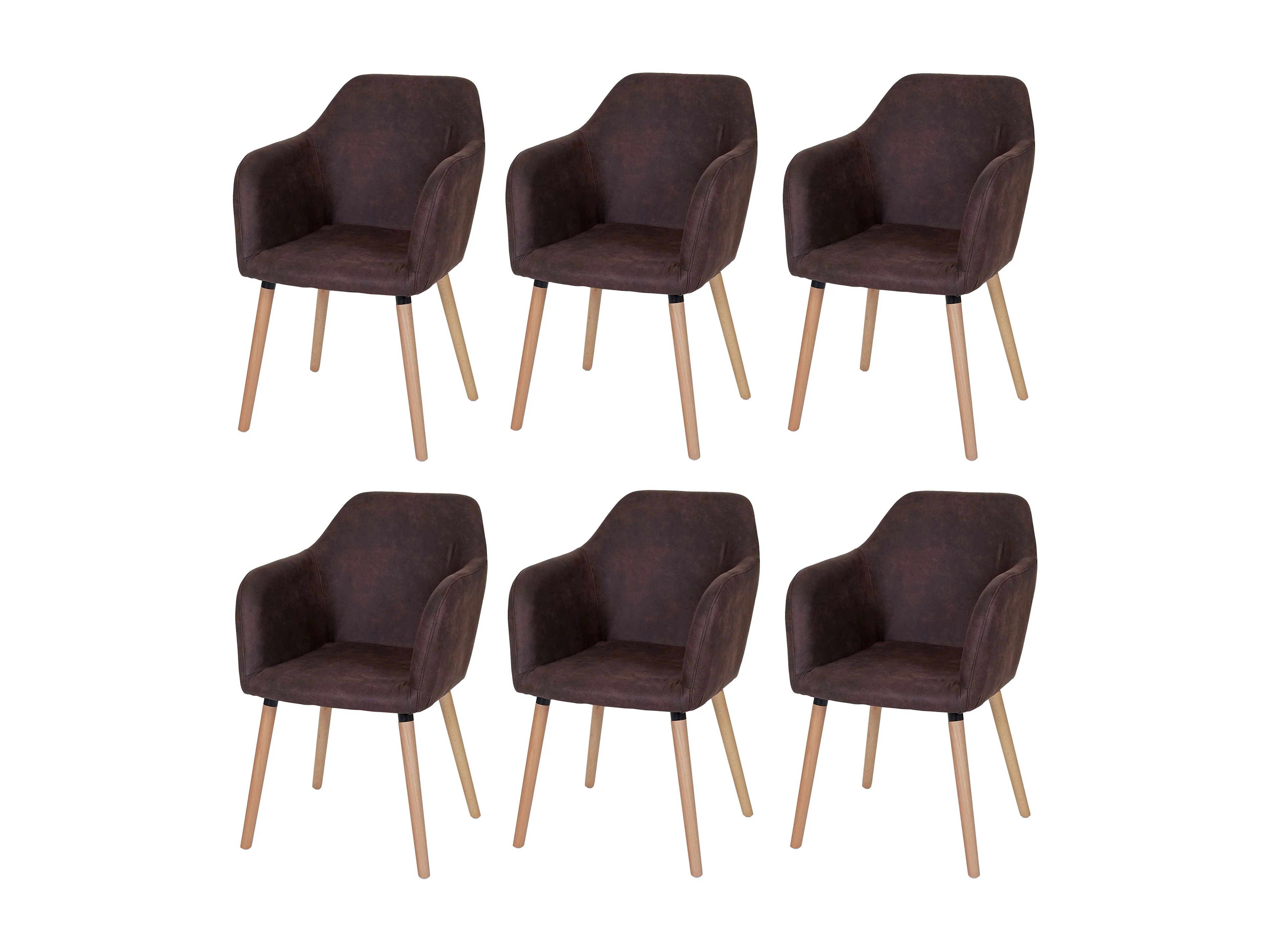 Chaise de salle à manger Vaasa T381 (lot de 6), tissu, vintage marron foncé