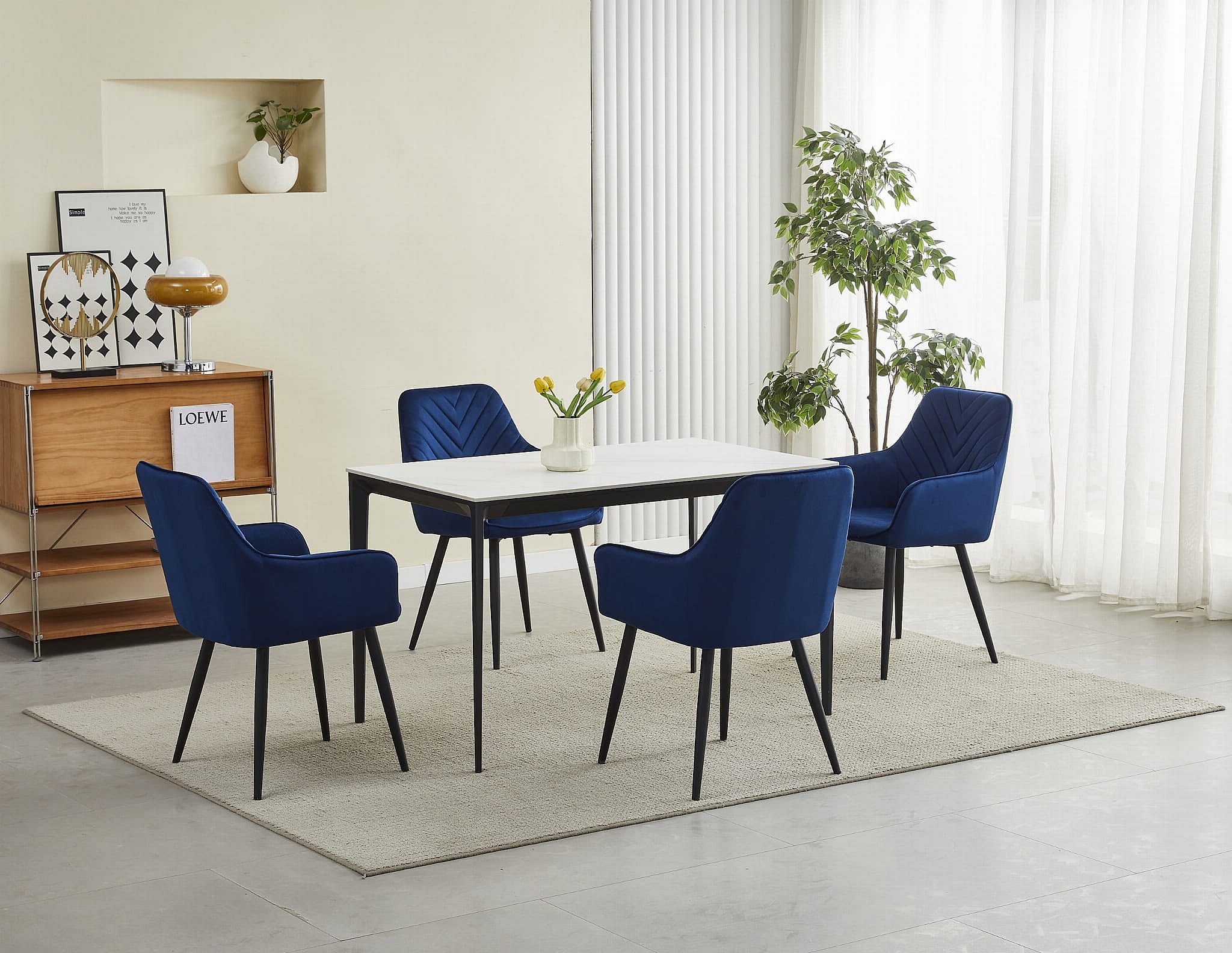 Chaise de salle à manger Valora WAAV – Velours bleu marine avec pieds noirs x 1