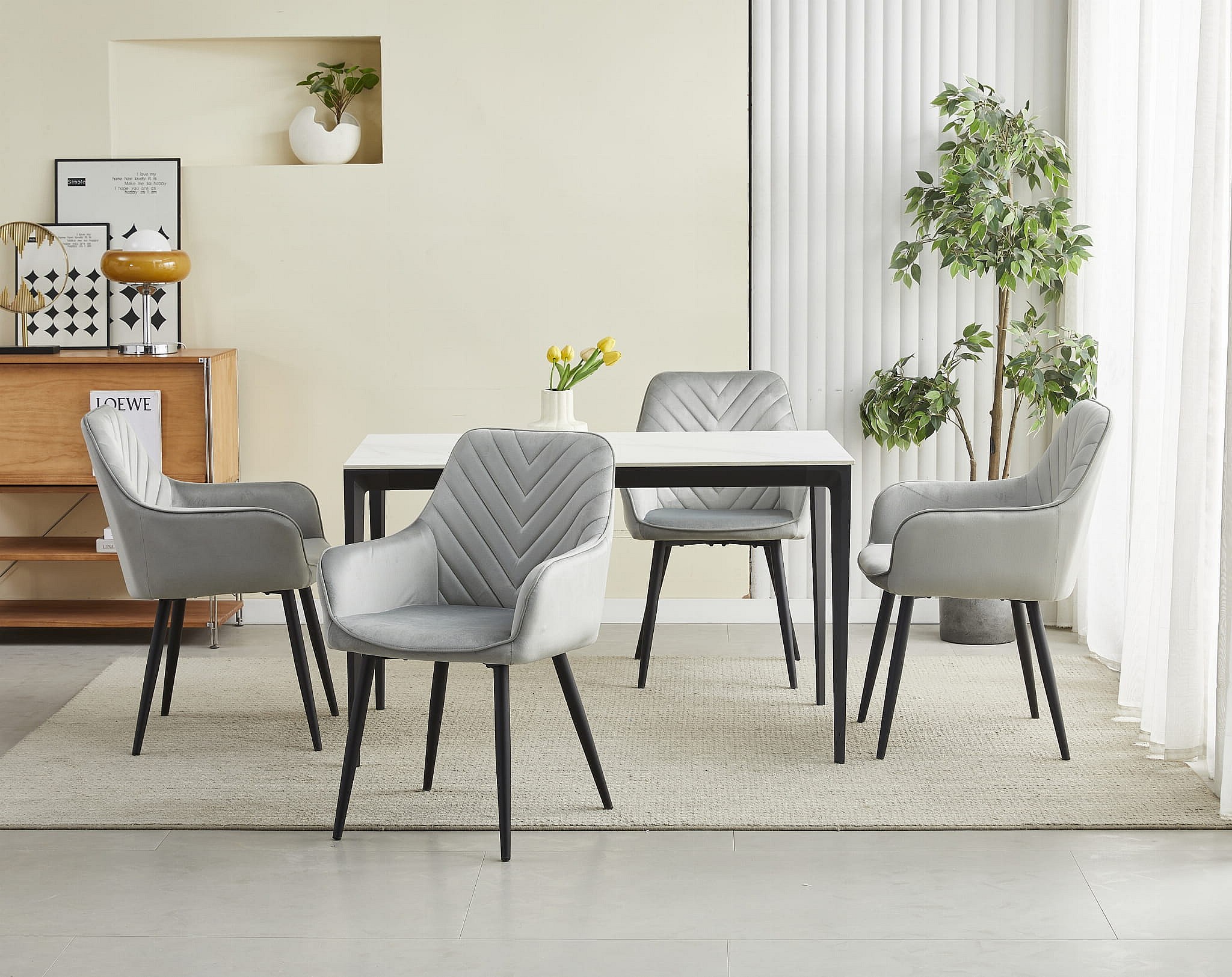 Chaise de salle à manger Valora WAAV – Velours gris argenté avec pieds noirs x 1