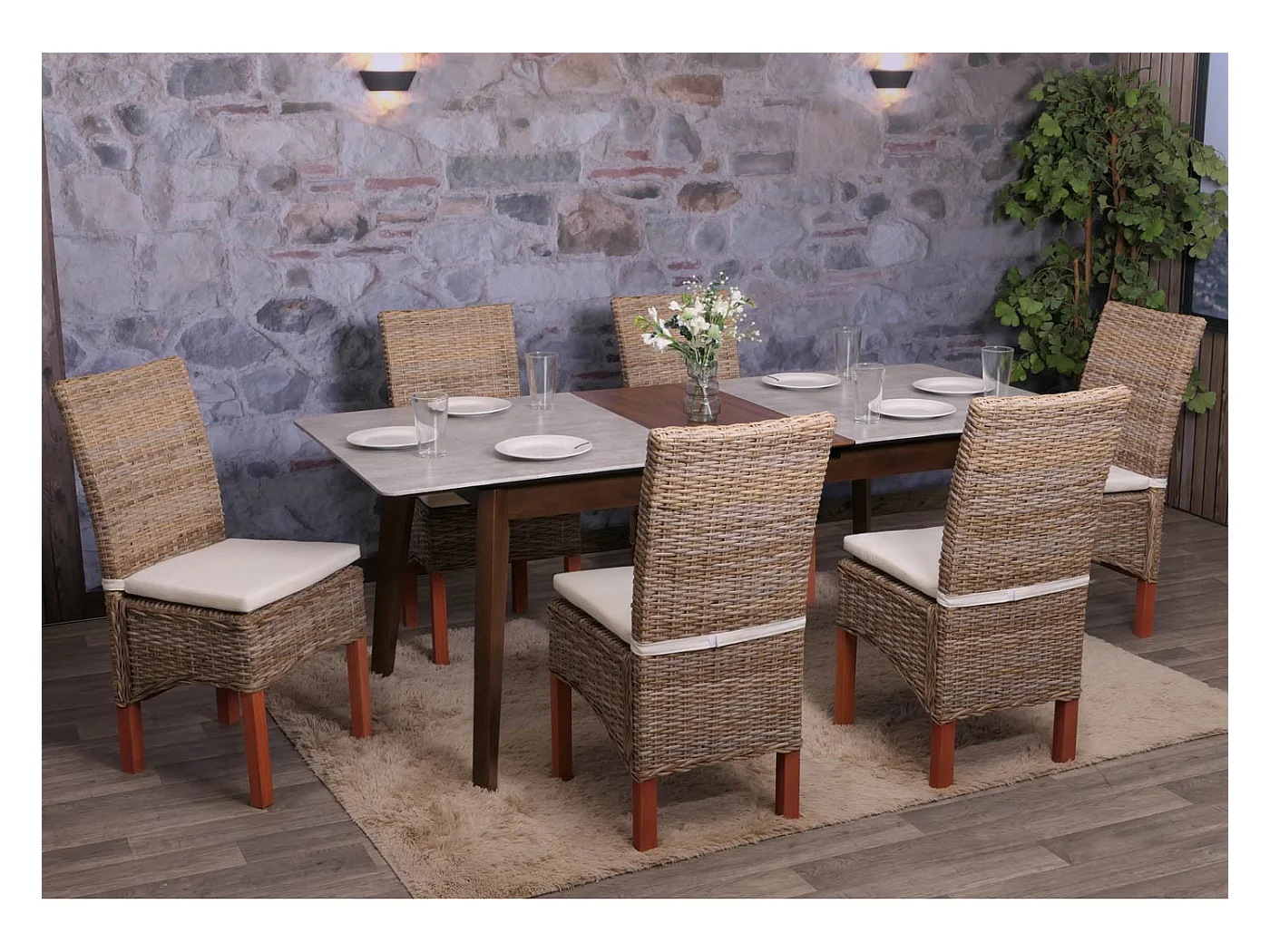Chaises à manger lot de 6 rotin Kubu bois de manguier