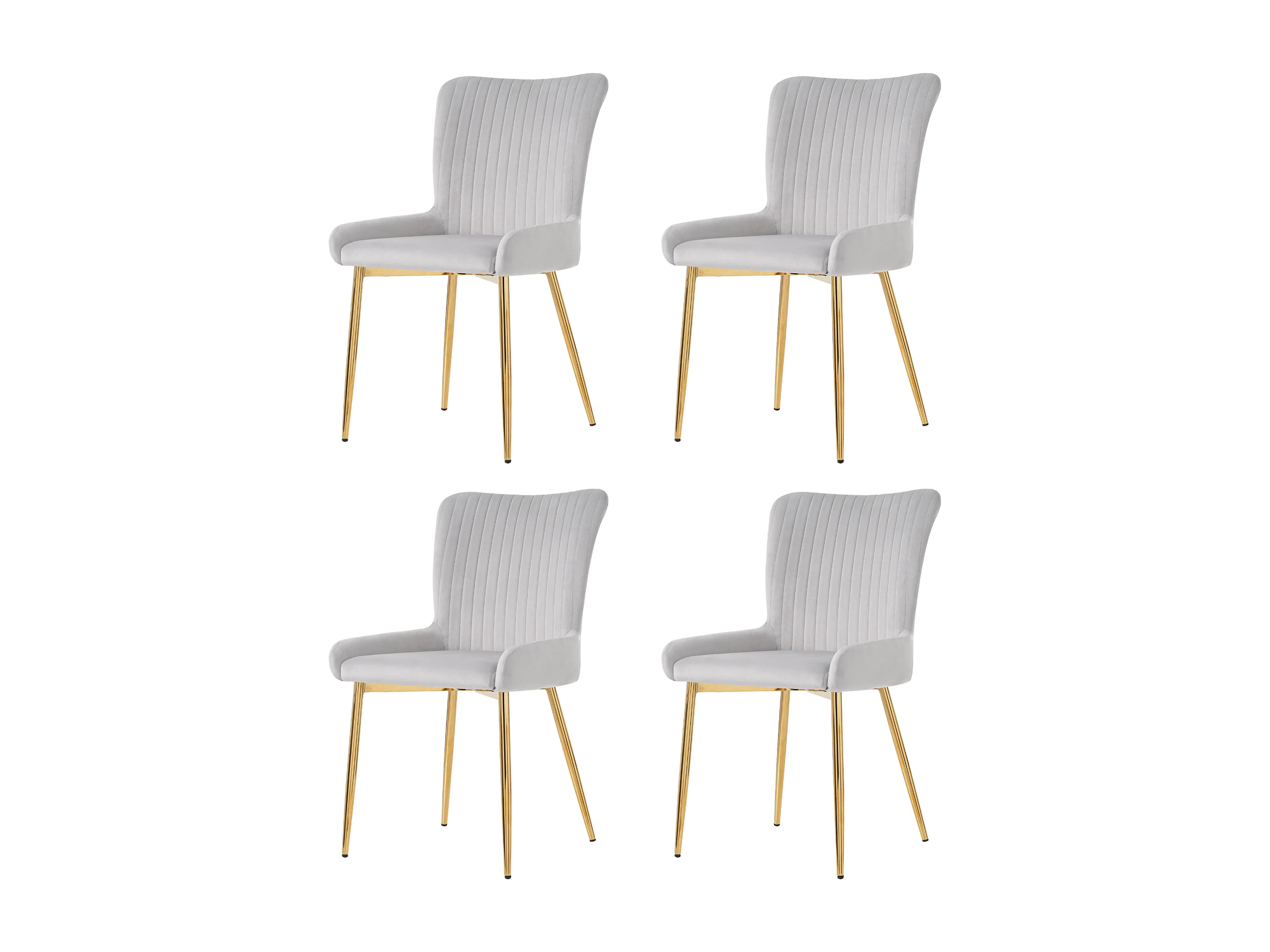 Chaise De Salle à Manger Velours, 4 Pièces, Pieds Métalliques Dorés, Gris
