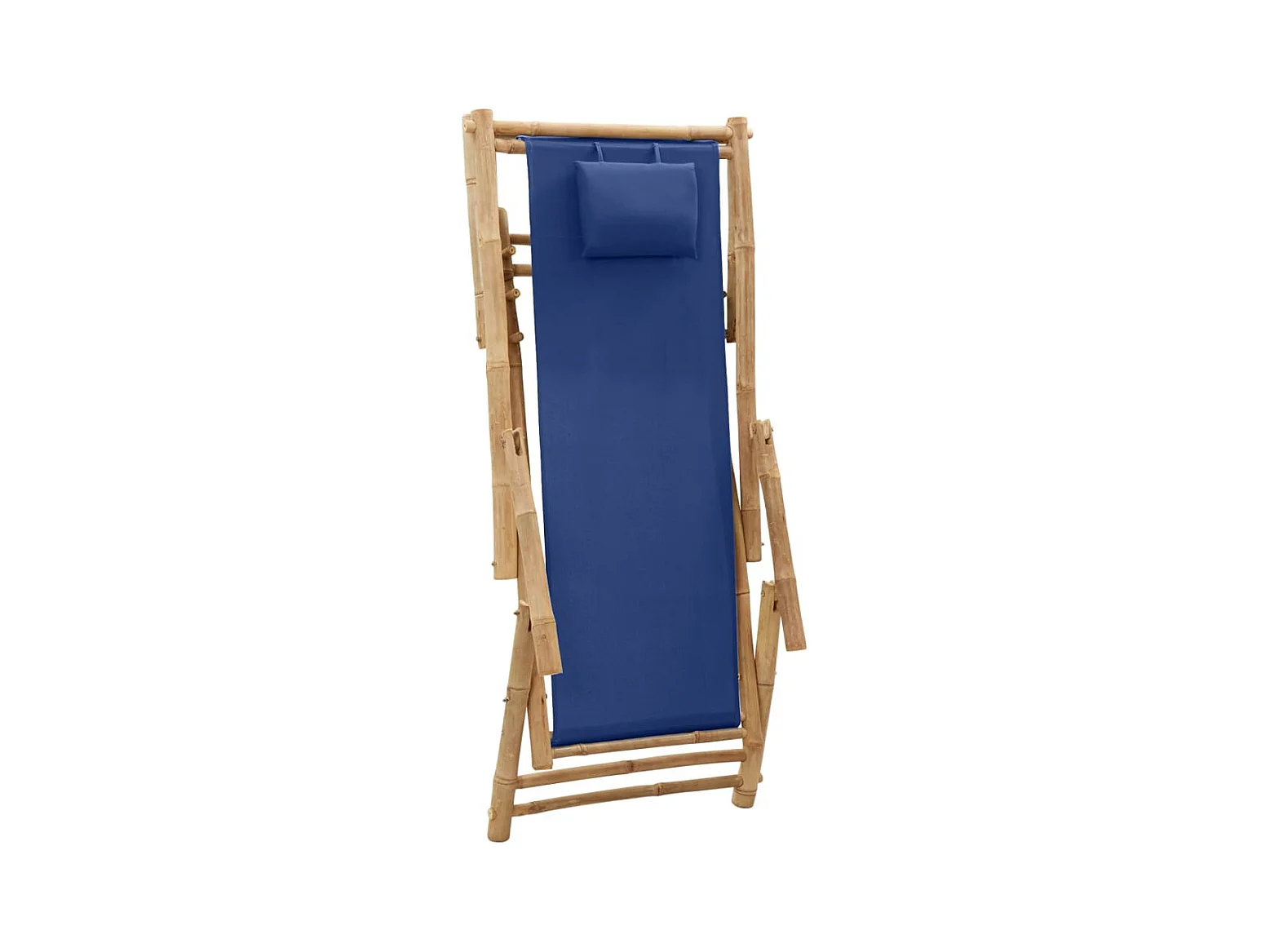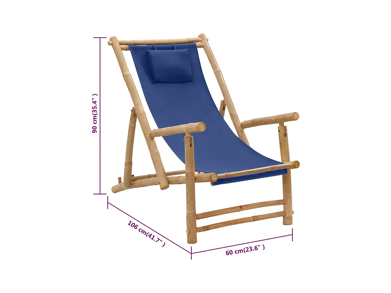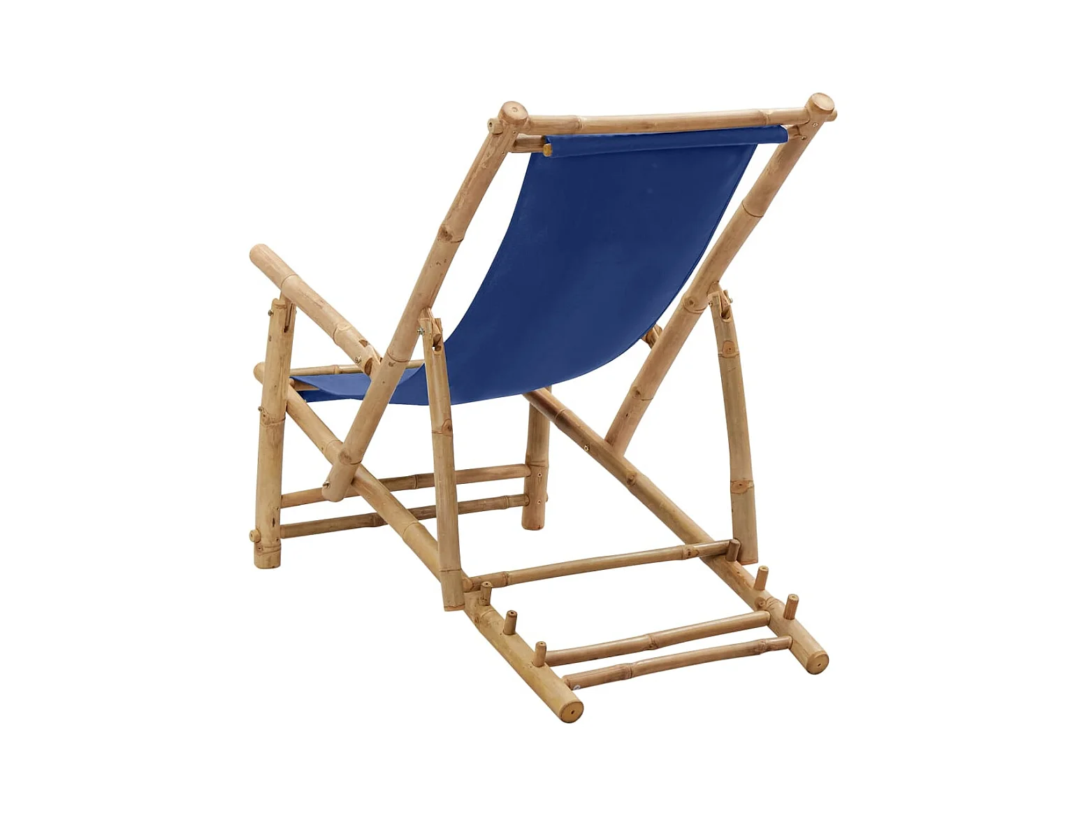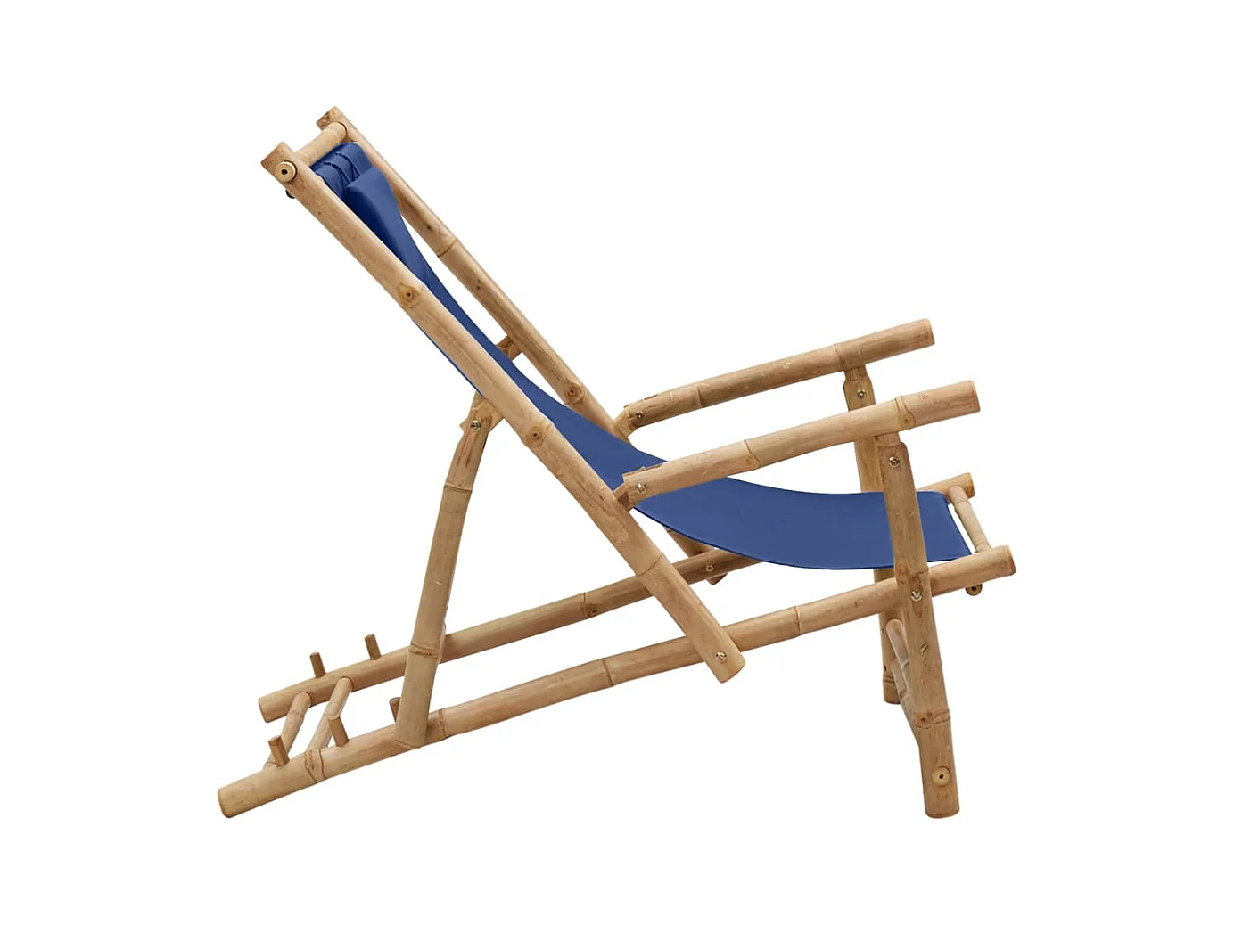 Chaise de plage pliable bleu et blanc bois d'eucalyptus/tissu