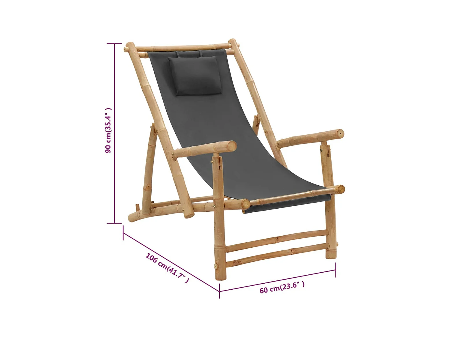 Chaise de terrasse Bambou et toile Gris foncé