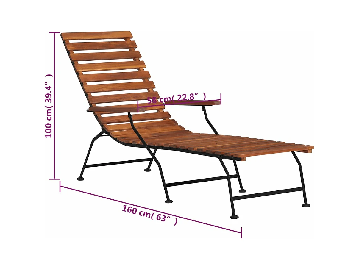 Chaise longue avec pieds en acier Bois d'acacia massif