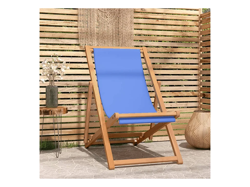Chaise pliable de plage Tissu et cadre en bois Bleu