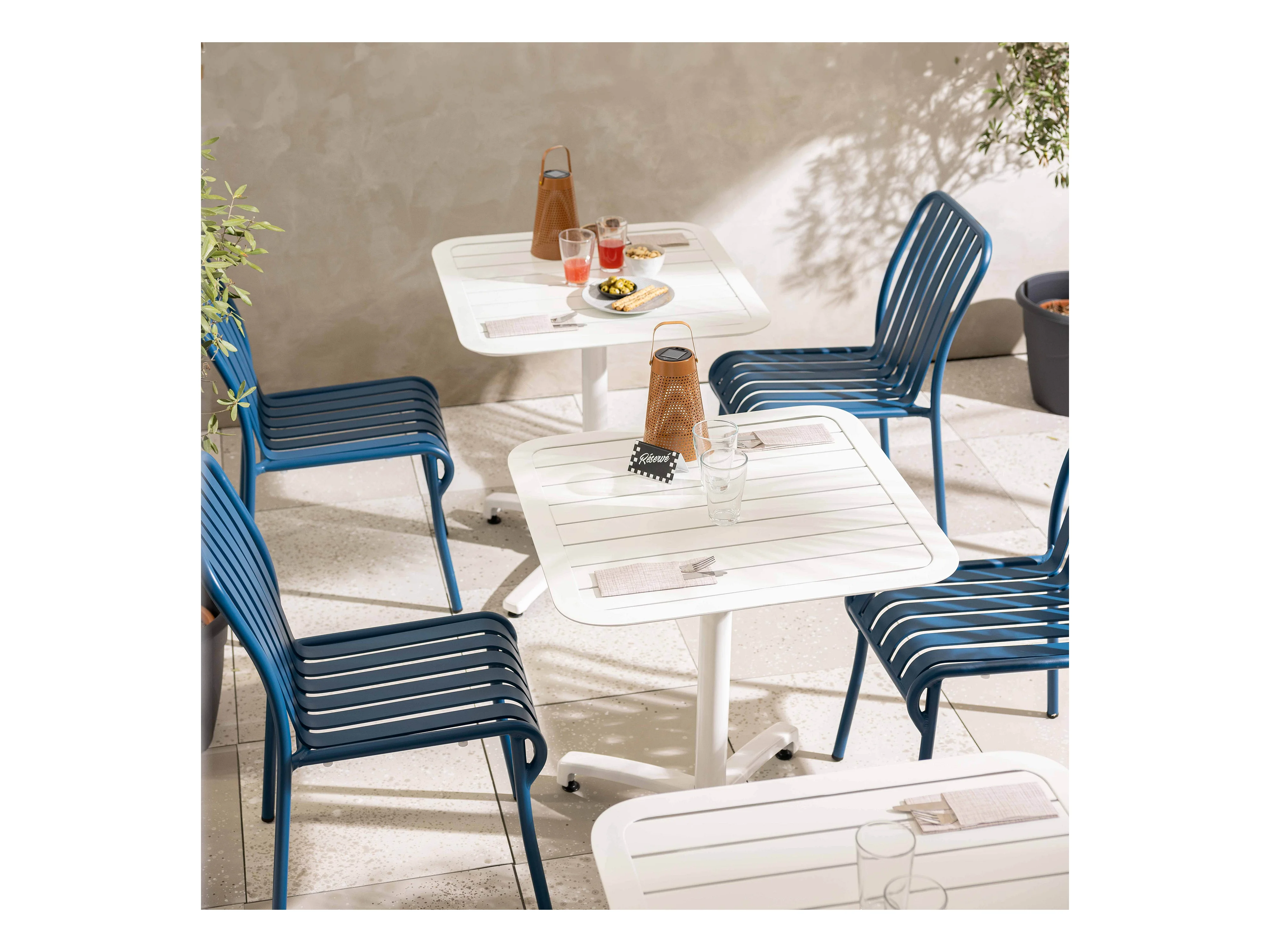 Chaise de terrasse style bistrot parisien en aluminium et rotin bleu