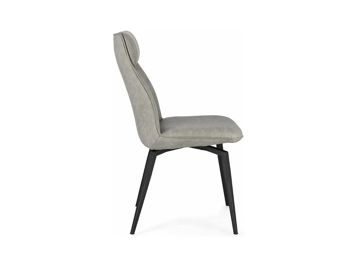 Chaise design simili cuir beige et pieds acier noir Lowra - Lot de 2