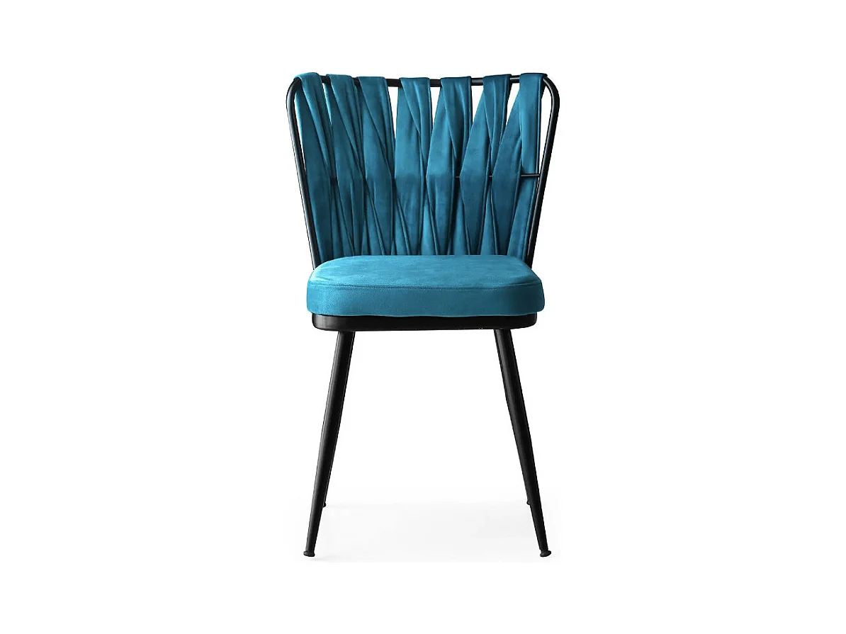 Chaise design velours bleu turquoise et pieds doré Ribaldi - Lot de 2