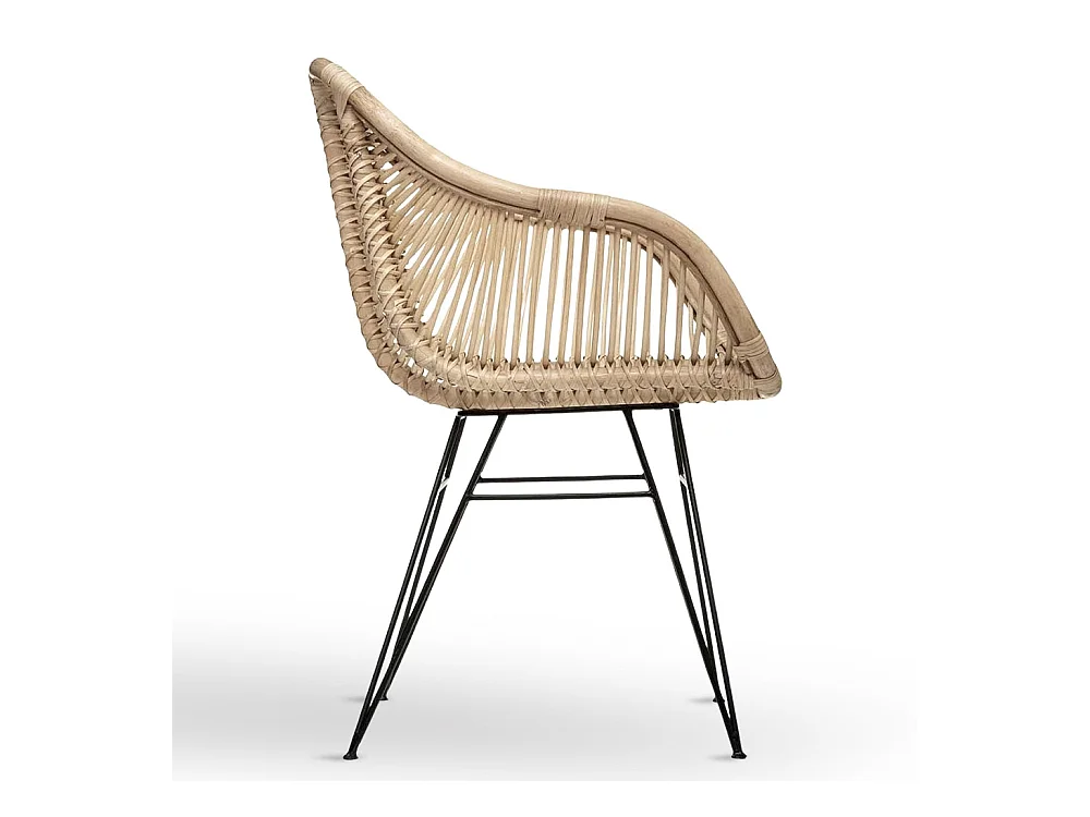 Fauteuil Betty en bois de bambou véritable avec pieds en fer peint