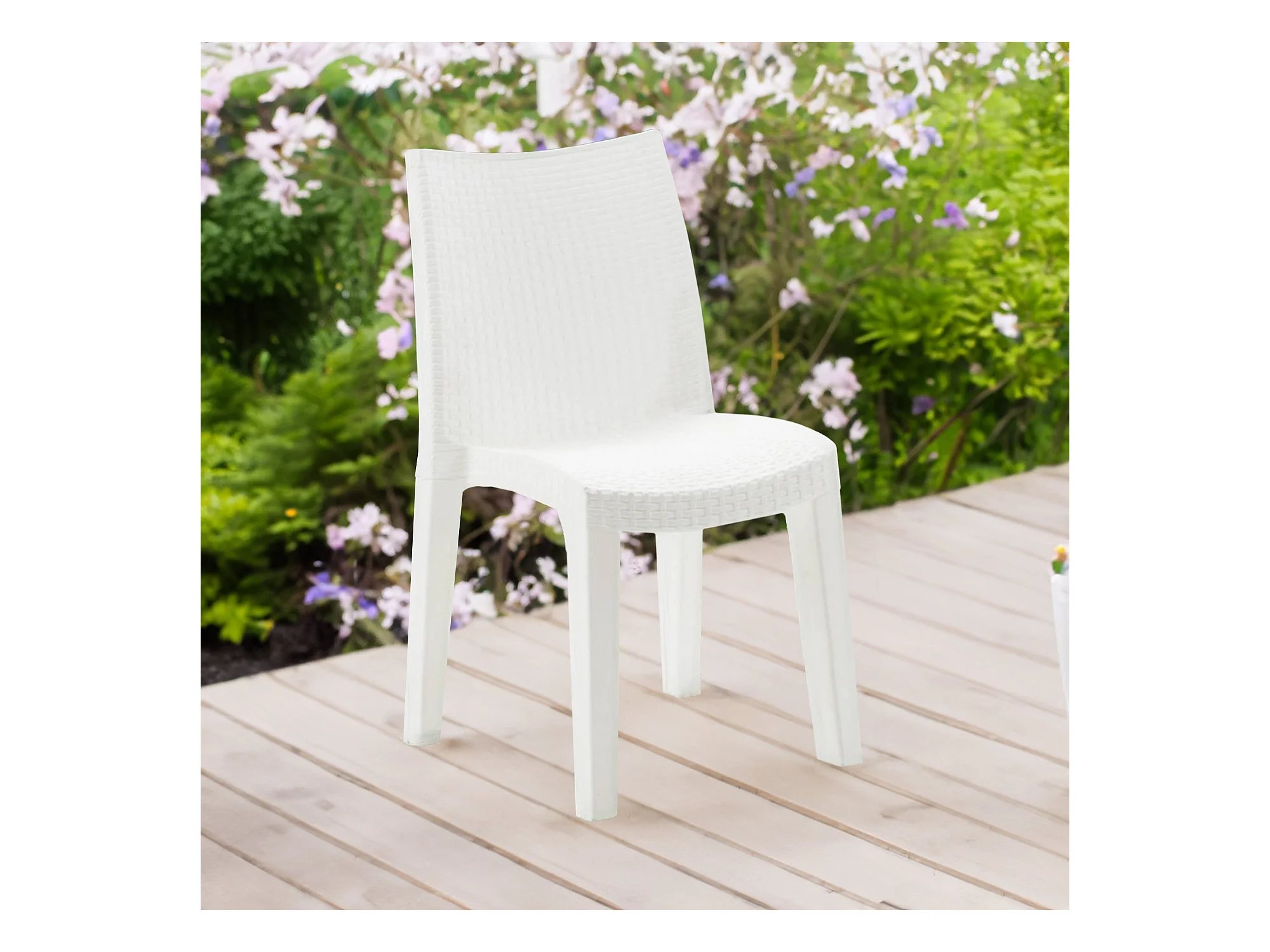 Chaise d'extérieur Dmondin, Siège de jardin, Chaise pour table à manger, Fauteuil d'extérieur effet rotin, 100% Made in Italy, 48x55h86 cm, Blanc