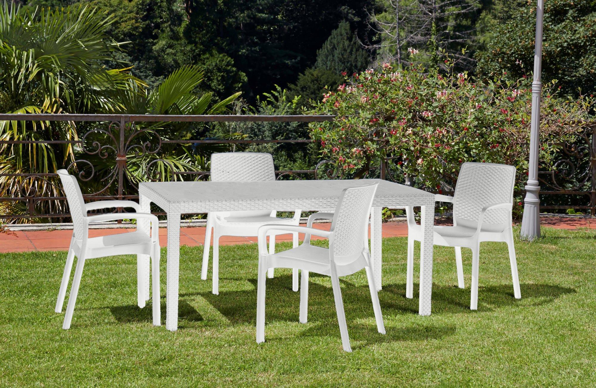 Ensemble de 4 chaises d'extérieur Dnardin, Sièges de jardin, Chaise de table à manger, Fauteuil d'extérieur effet rotin, 100% Made in Italy, 54x60h82 cm, Blanc
