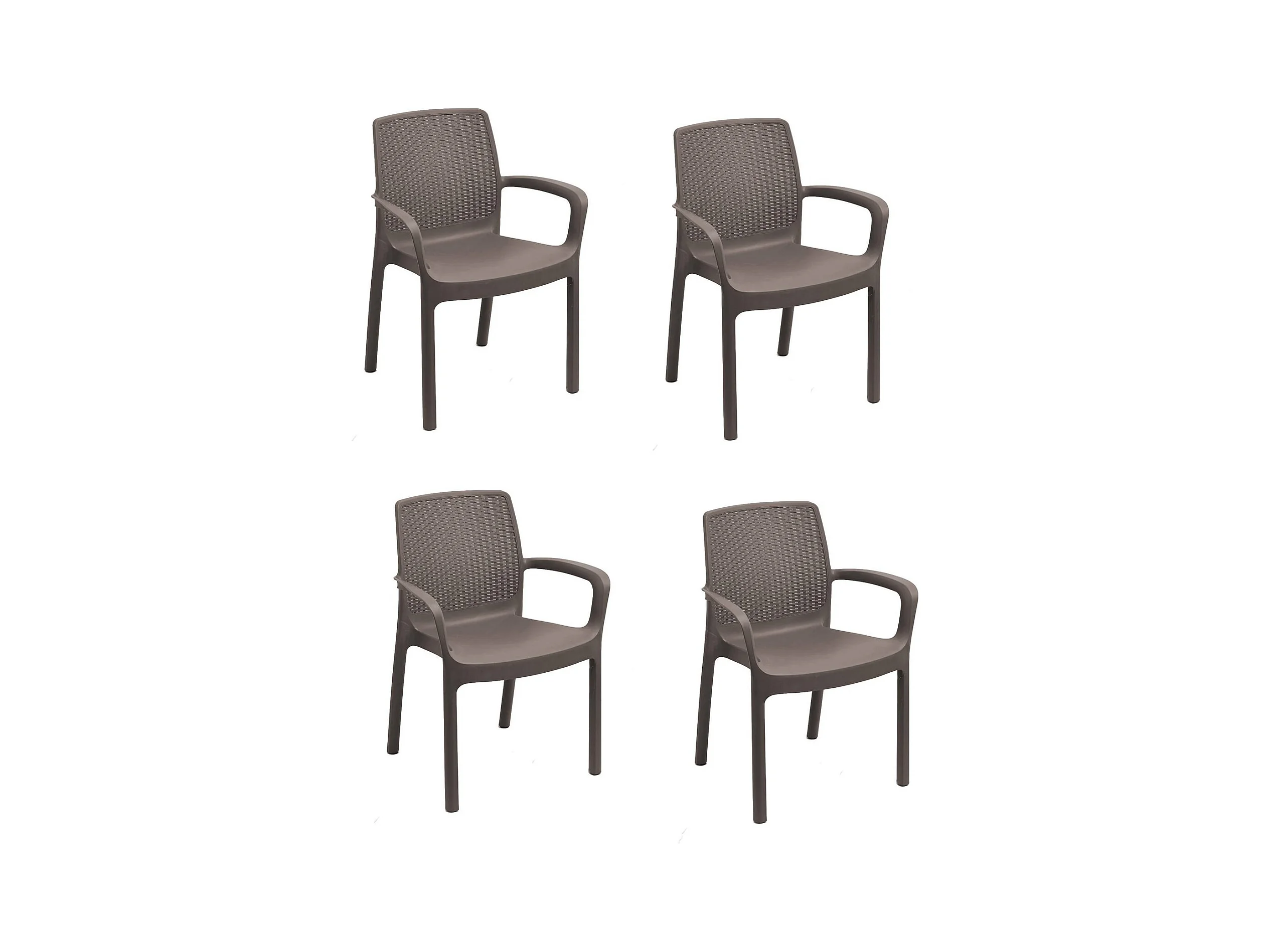 Ensemble de 4 chaises d'extérieur Dnardin, sièges de jardin, chaise de table à manger, fauteuil d'extérieur effet rotin, 100% Made in Italy, 54x60h82 cm, marron