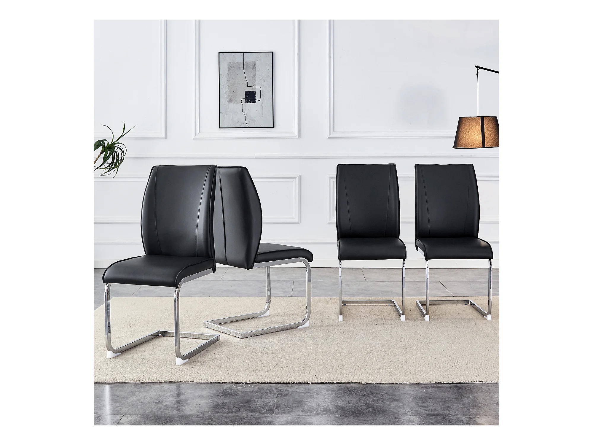 Chaise de salle à manger nordique, PU noir, pieds métalliques argentés (40.6x48.2x96.5 cm)