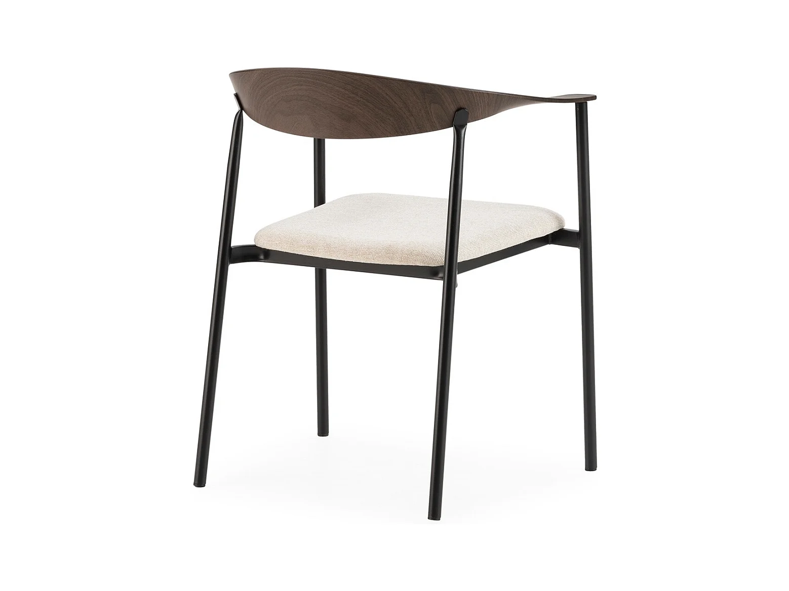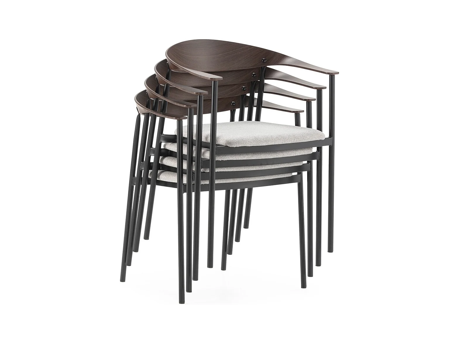 Chaise empilable KALIKO - Métal noir, bois noyer et tissu blanc
