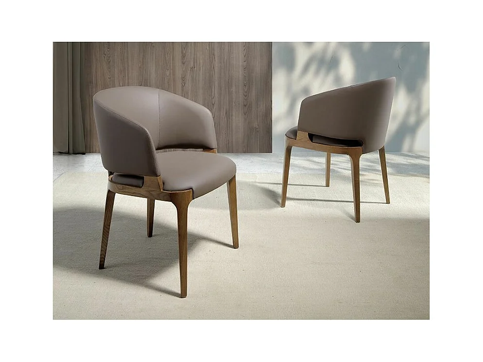 Chaise en bois de frêne et cuir taupe Alissia-Couleur Aqua 00 Blanc