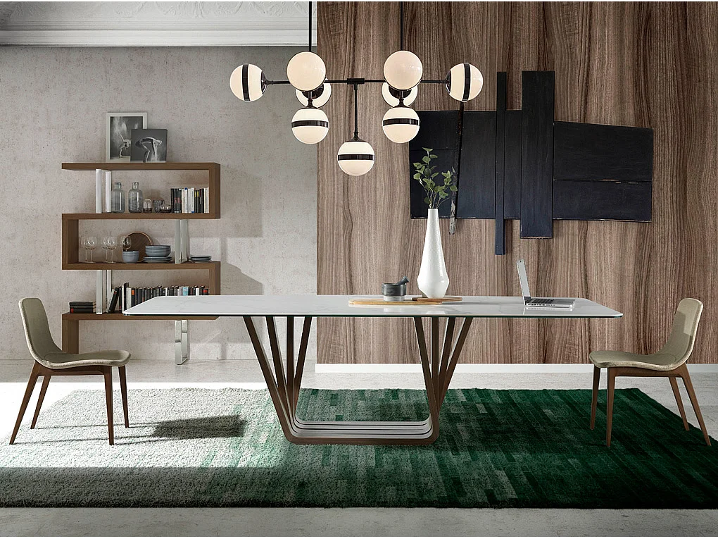 Table à manger extensible 6 à 10 personnes en céramique, verre trempé et métal - Effet marbre blanc et anthracite - COREMA de Maison Céphy