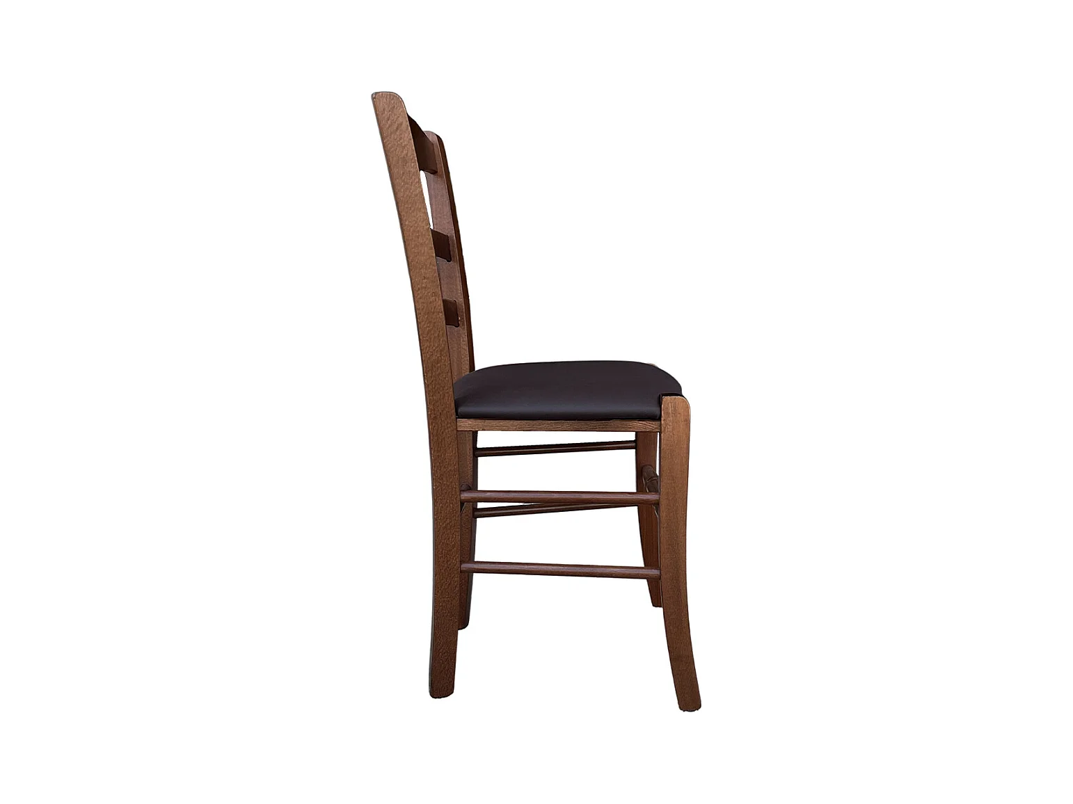 Chaise en bois de Venise couleur cerisier avec assise en similicuir rembourré beige