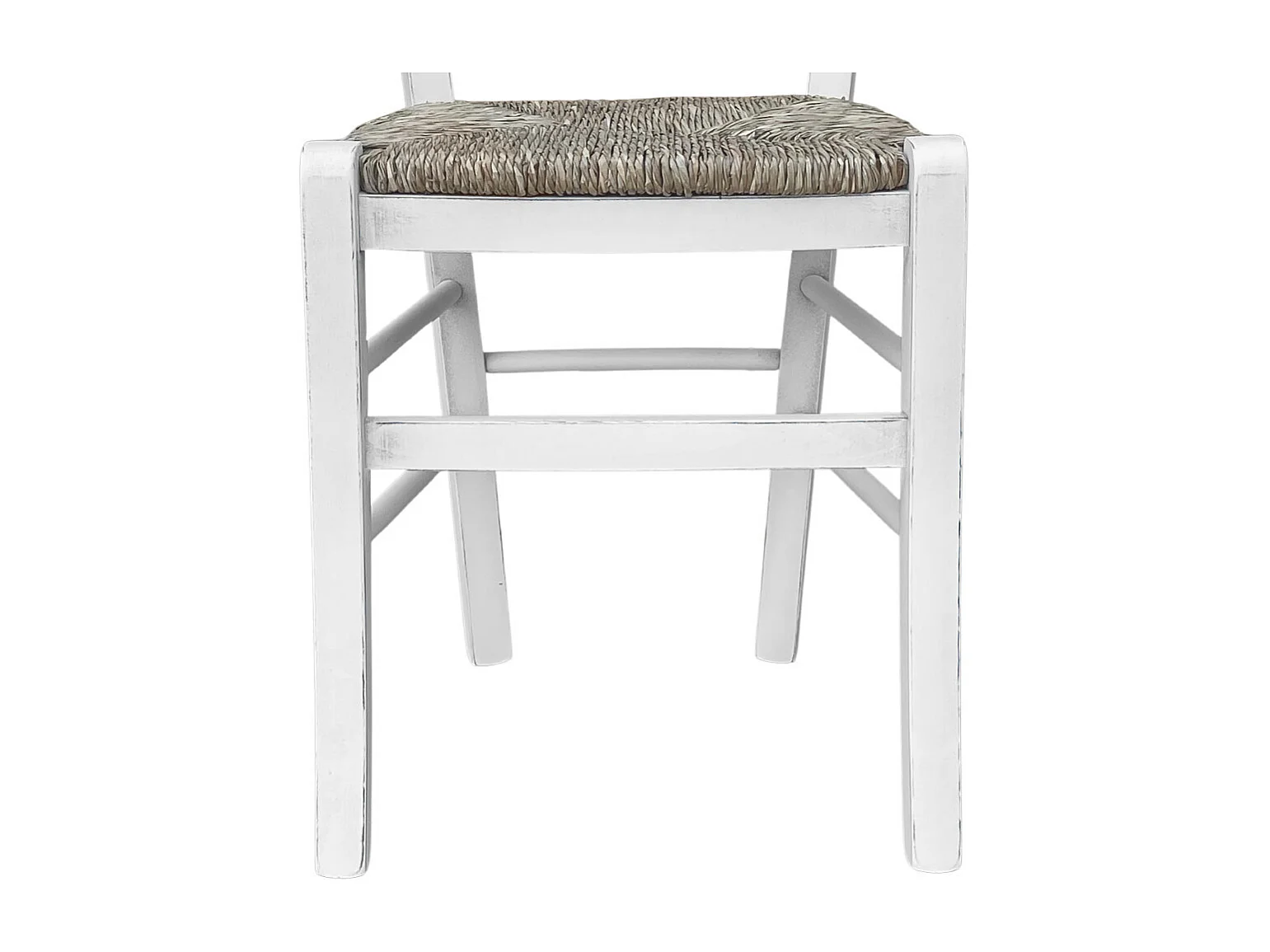 Chaise en bois de Venise antique croix blanche avec assise en paille