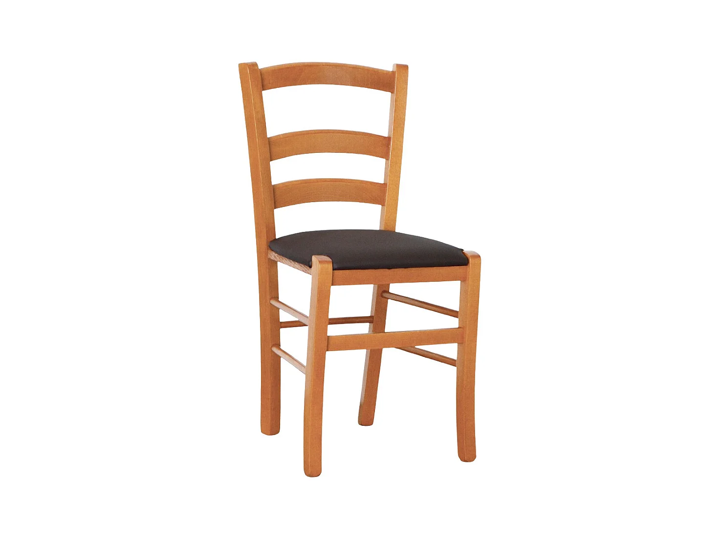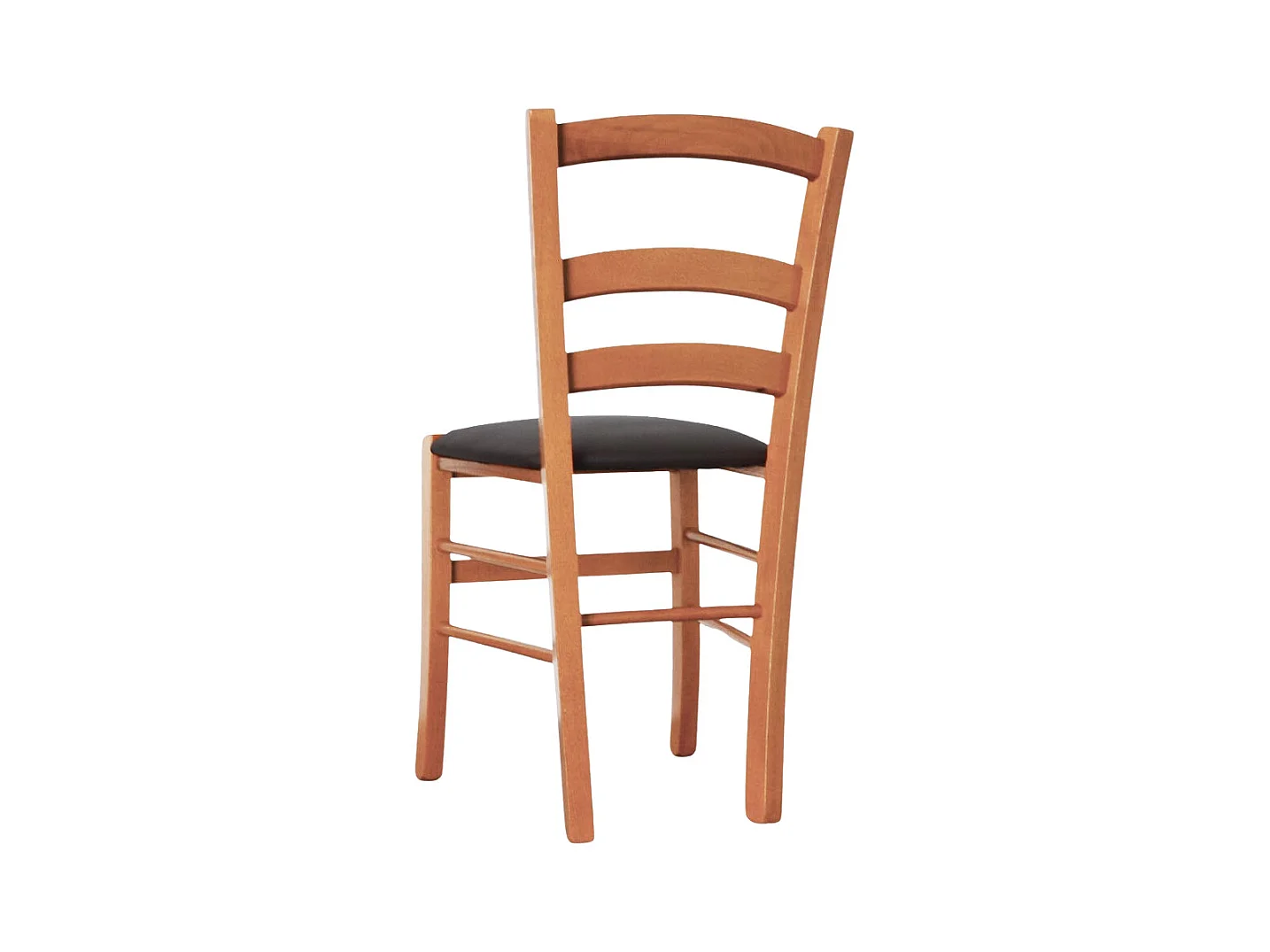 Chaise en bois de Venise couleur cerisier avec assise rembourrée en similicuir marron
