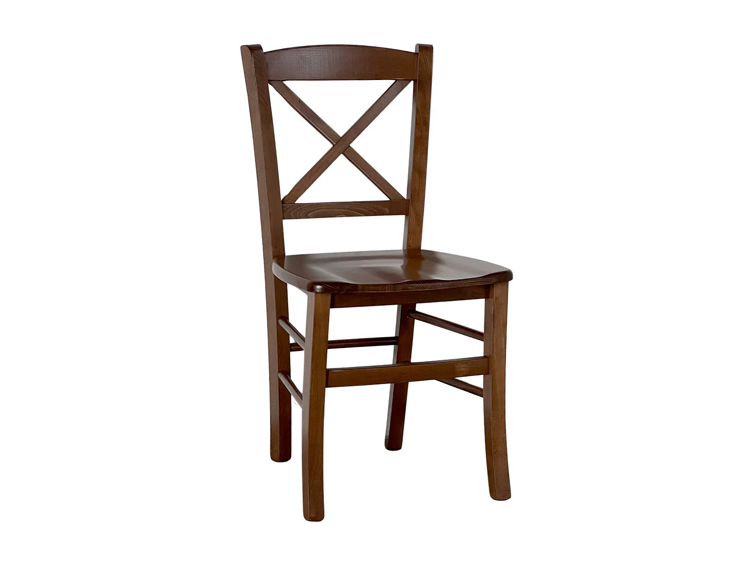 Chaise en bois de Venise croix assise en bois de noyer foncé