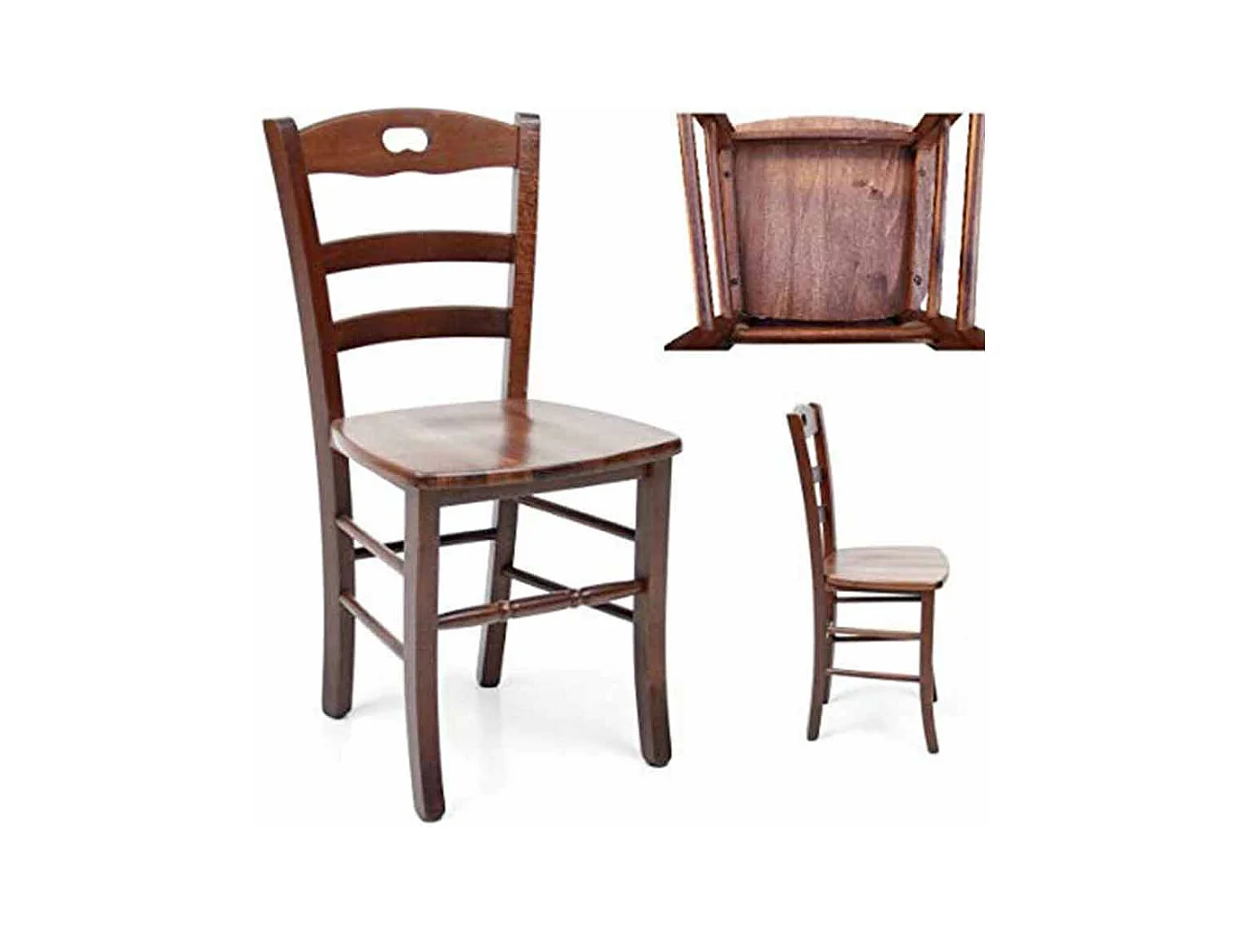 Chaise de salle à manger Venice avec assise en bois massif de noyer foncé