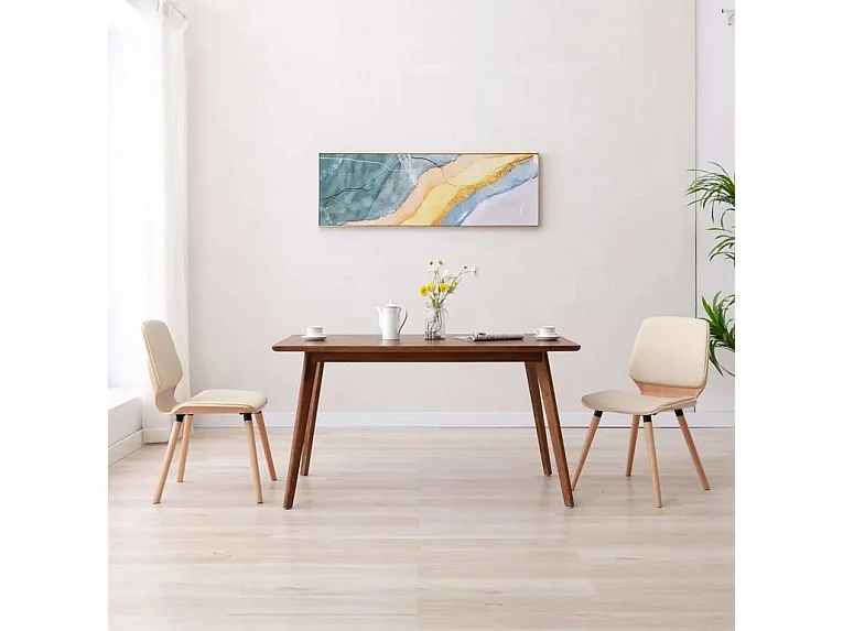 Chaise en bois naturel et simili cuir beige Klazo - Lot de 2