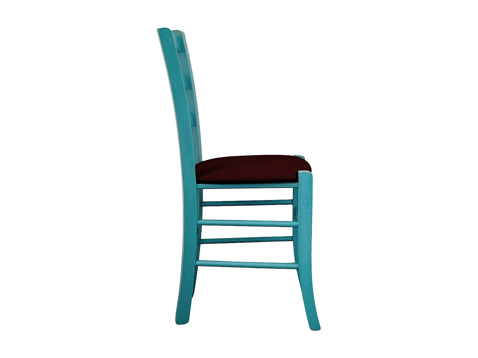 Chaise en bois Turquoise Venezia avec assise en similicuir rouge