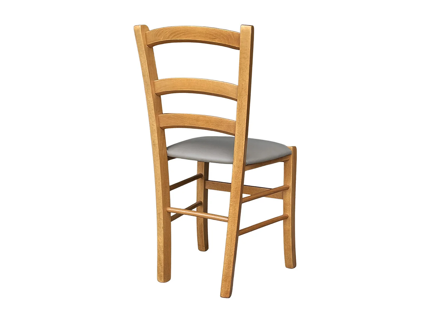Chaise en bois Venice avec assise rembourrée simili cuir gris tourterelle noyer clair