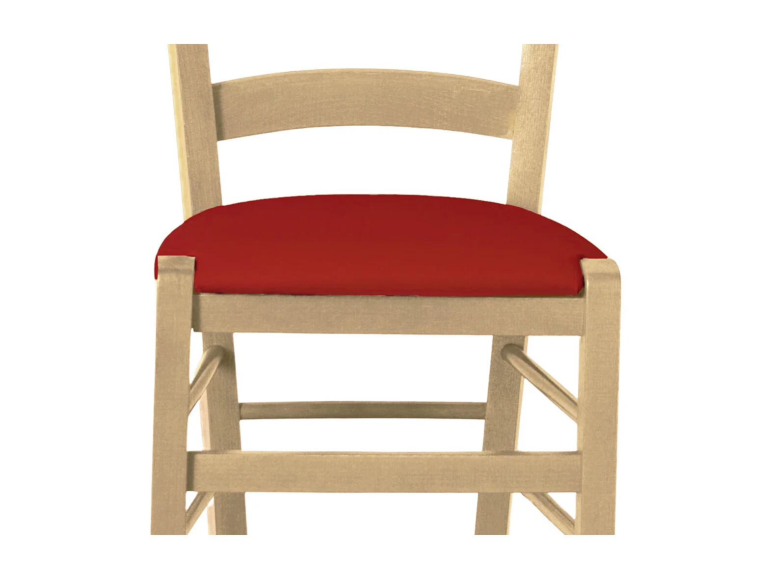 Chaise en bois vénitien naturel avec assise en similicuir rouge
