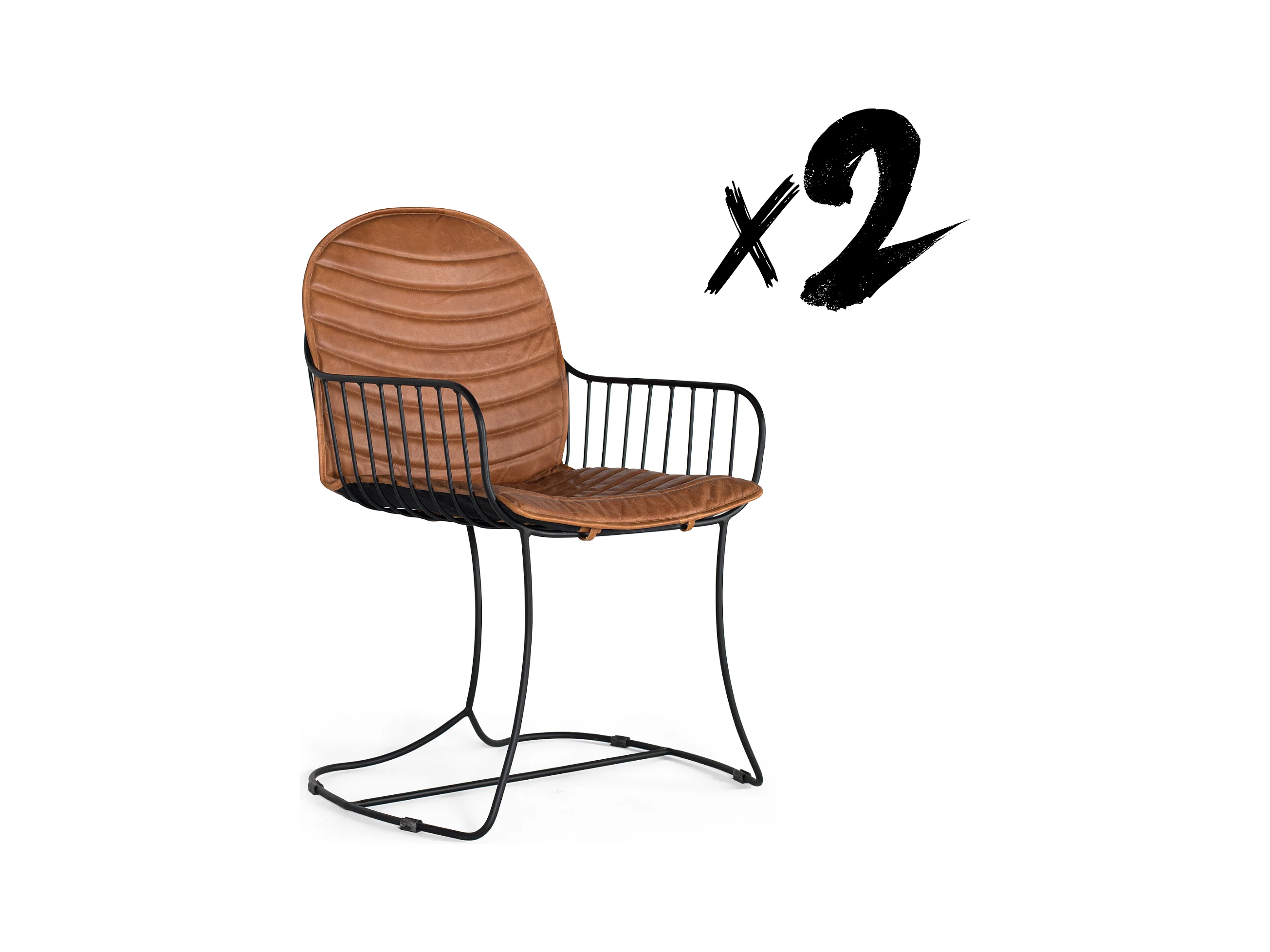 Ensemble de 2 chaises tapissées de cuir marron naturel